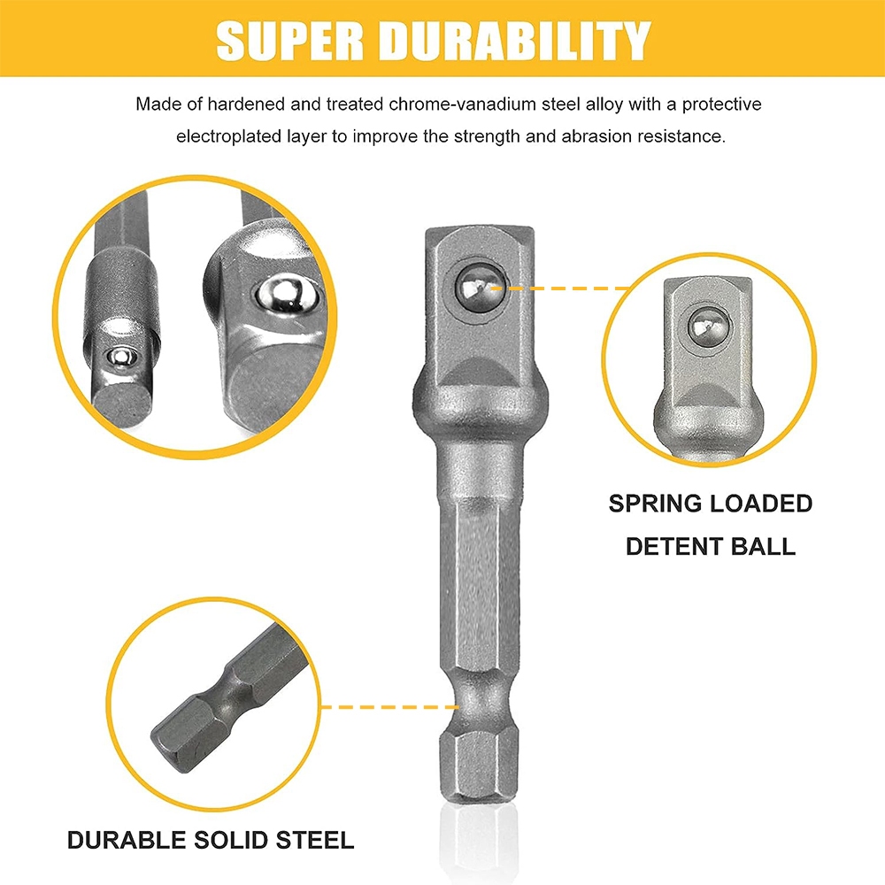 JLD adaptor socket set 3pcs Kunci Socket Impact Driver Converter 1/2,3/8,1/4inch Socket adaptor Sesuaikan Bor Listrik Anda Dengan Kunci Impact Torsi Tinggi