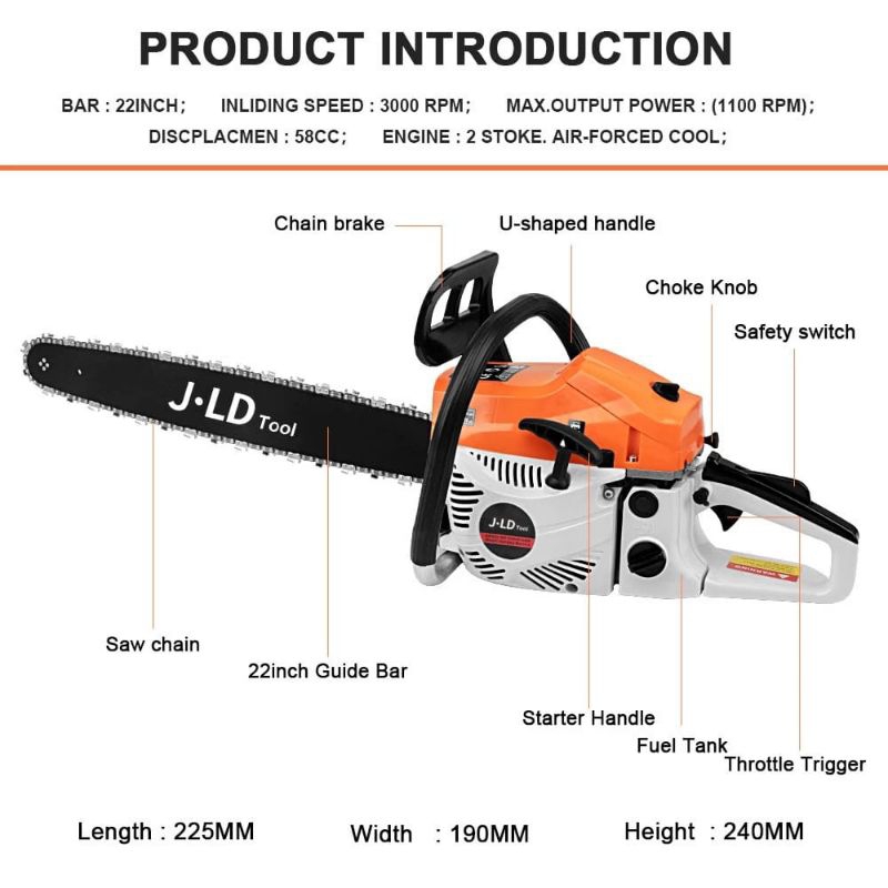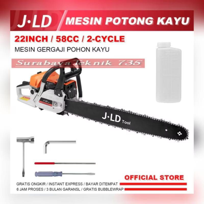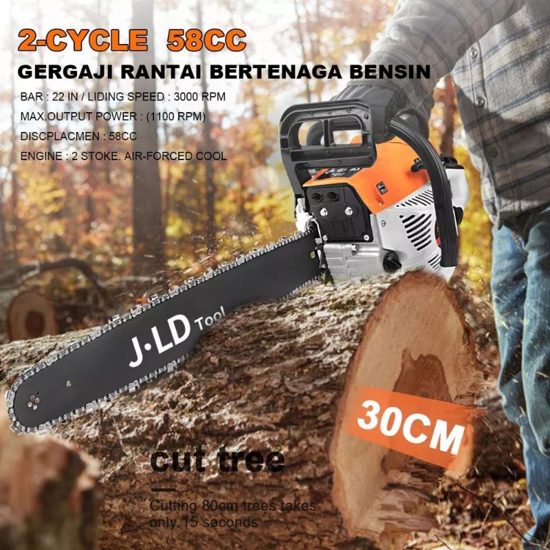 JLD mesin potong kayu 58CC mesin sinso senso chainsaw 2 tak 22 inch gergaji potong pohon kayu
