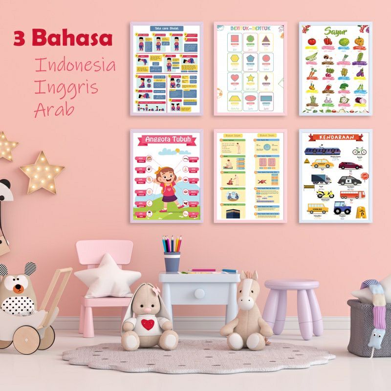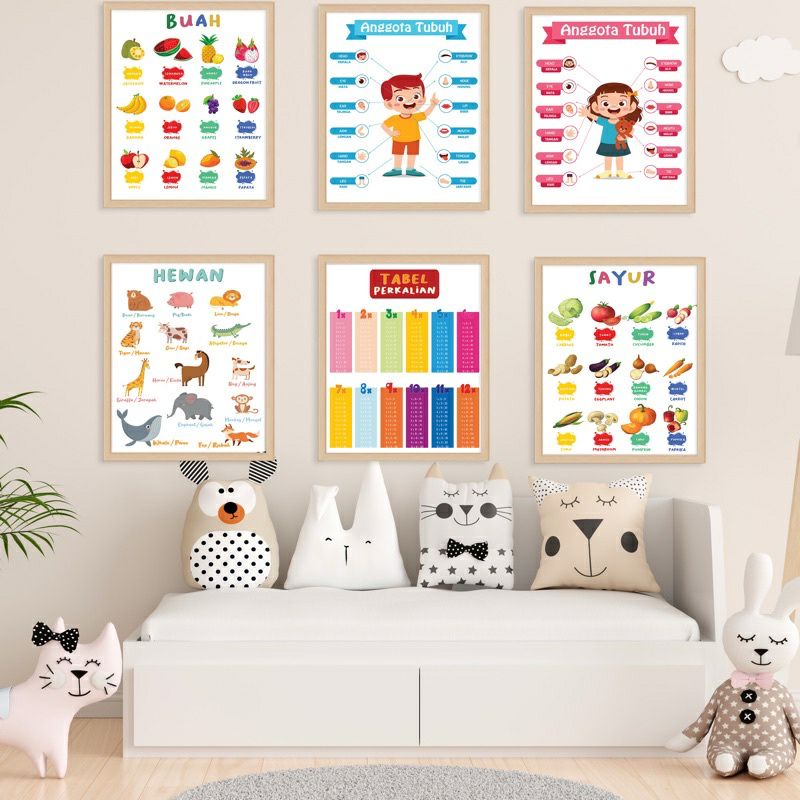 JMall Poster Anak Pendidikan Edukasi Mainan Belajar Edukatif Untuk Anak Usia Paud Tk SD Hijaiyah Balita Batita