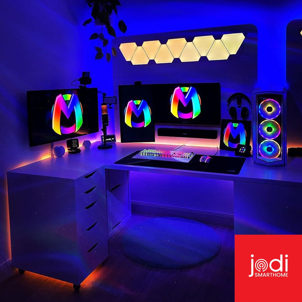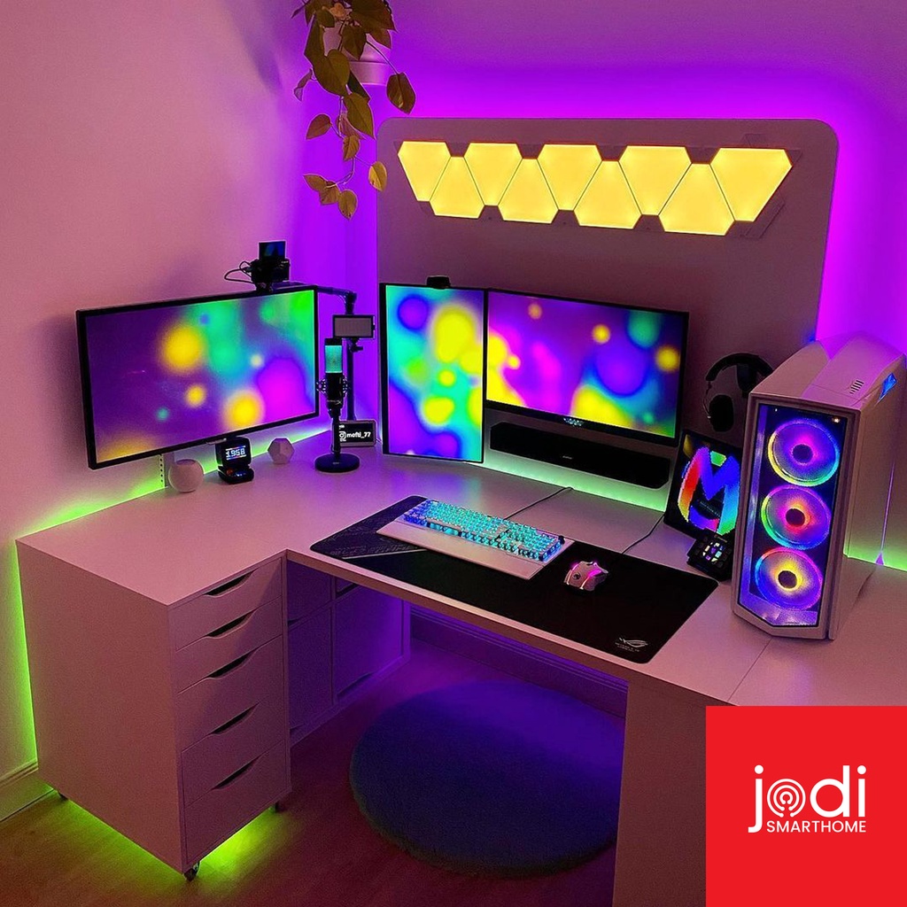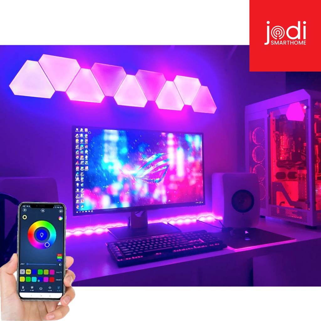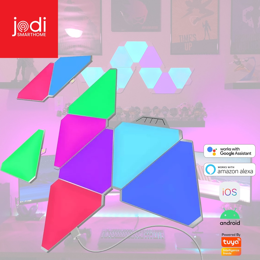 JODI Smart Triangle Light panel RGB Auto Google Assistant for PC Monitor LED TV Studio Interior Gaming Workspace (Home IOT Automation Google Alexa SIRI)