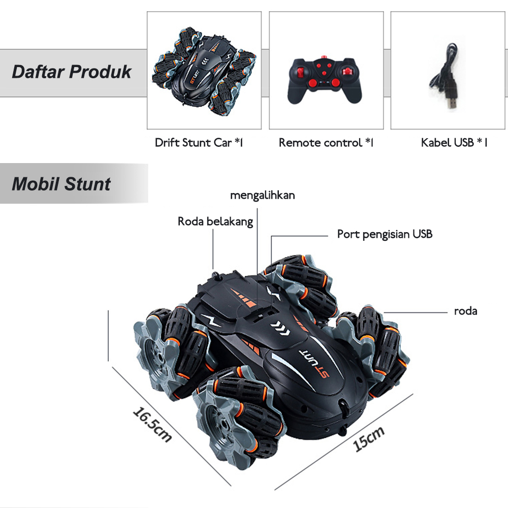 JOJOTOY RC Stunt Mobil Remote Control Drift Car With Light Mainan Anak Mobil Stunt Car 4WD RC 2.4Ghz