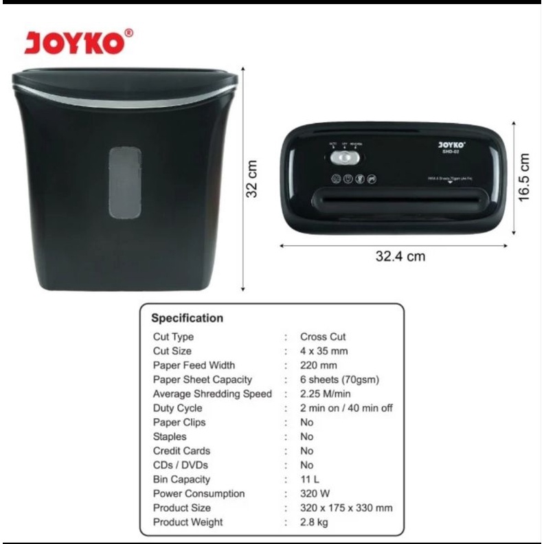 JOYKO SHD-02 Cross Cut Paper Shredder / Mesin Penghancur Potong Kertas SHD02