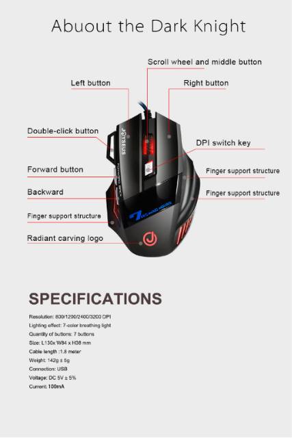 JOYSEUS RGB Gaming Mouse 3200DPI LED USB Professional Gaming Mouse X7 Black