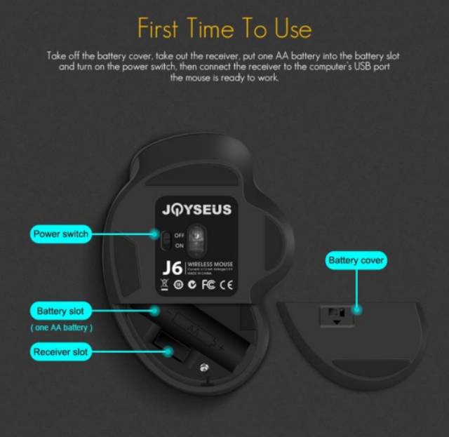 JOYSEUS Wireless Mouse 1600DPI USB Computer 2.4GHz Mouse -J6