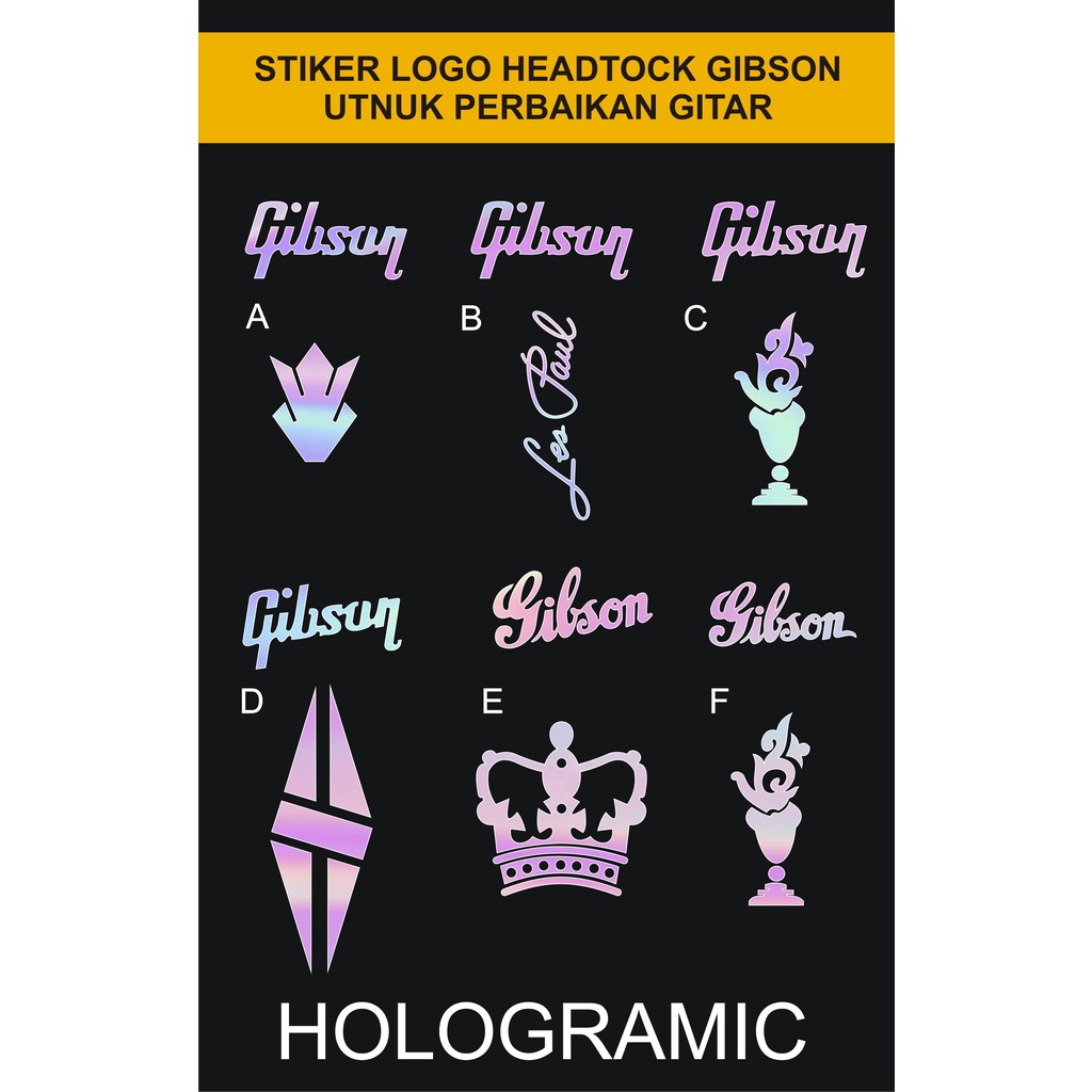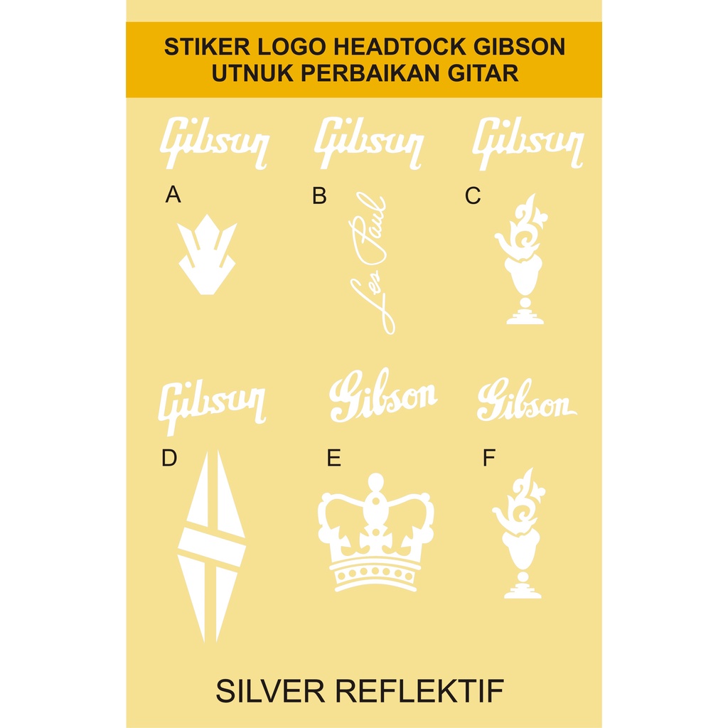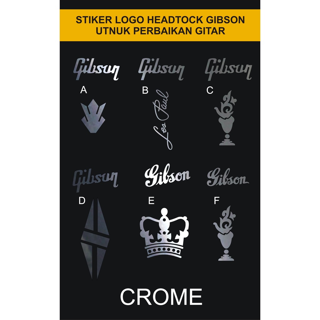 JUAL STIKER MEREK LOGO KEPALA GITAR HEADSTOCK GITAR GIBSON LESPAUL SG MONARCH CUSTOM CLASIK KERAN