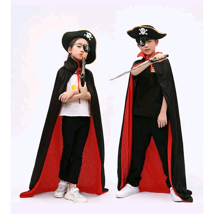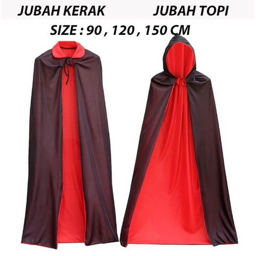 JUBAH HITAM MERAH / JUBAH PESTA KARAKTER HALLOWEEN MOTIF KERAK ATAU TOPI