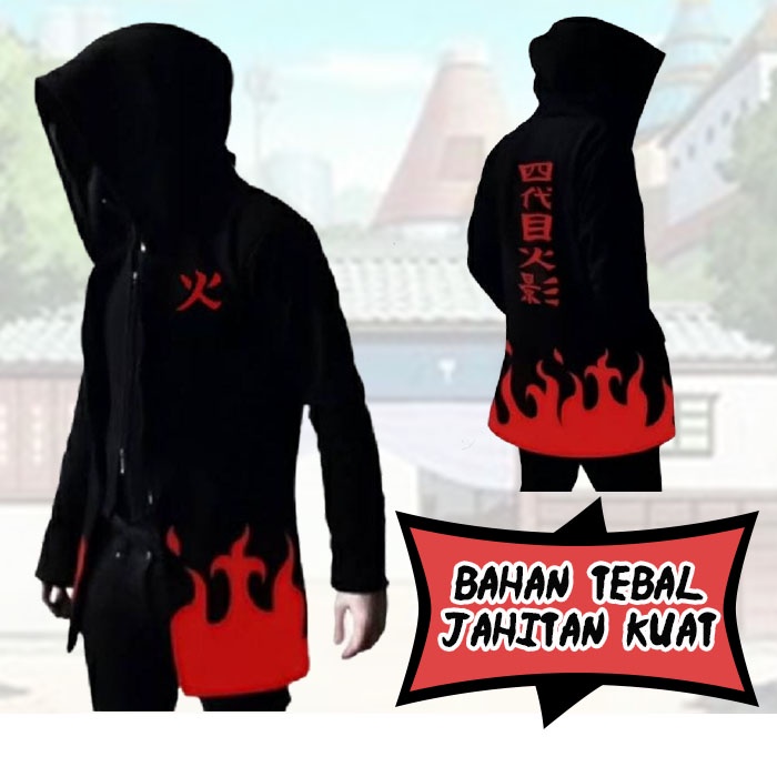 JUBAH NARUTO HOKAGE MERAH API JAKET JUBAH ANIME PRIA PANJANG LONG COAT KOREAN STYLE COWO COWOK KEREN HOODI PREMIUM UCIHA UCHIHA