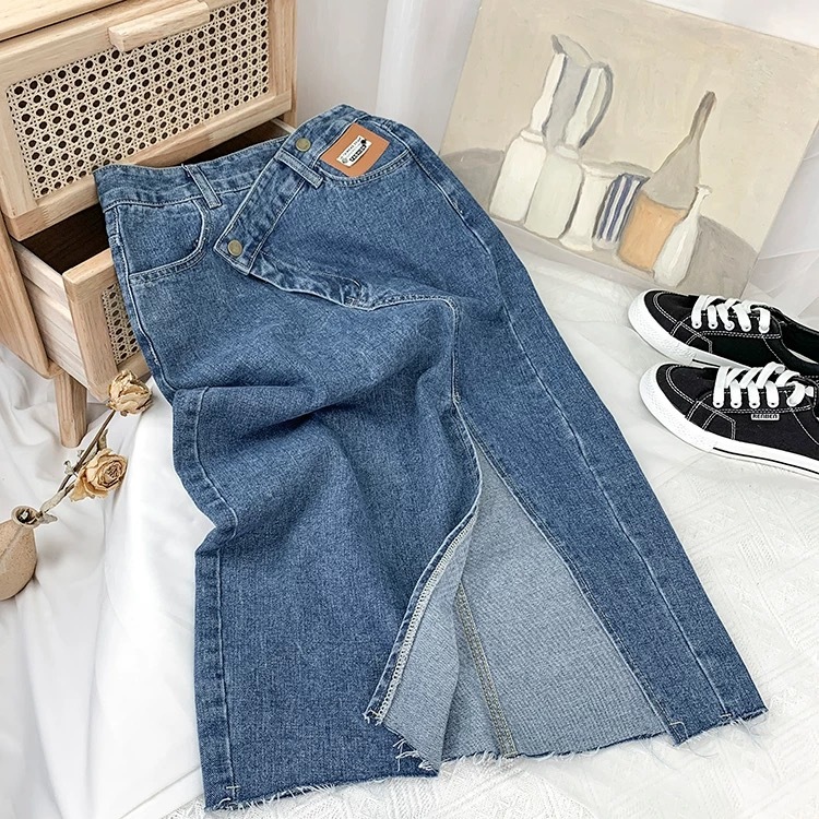 JUMBO-WANITA rok jeans panjang rok a line rok korean style rok high waist rok belah samping rok span jeans