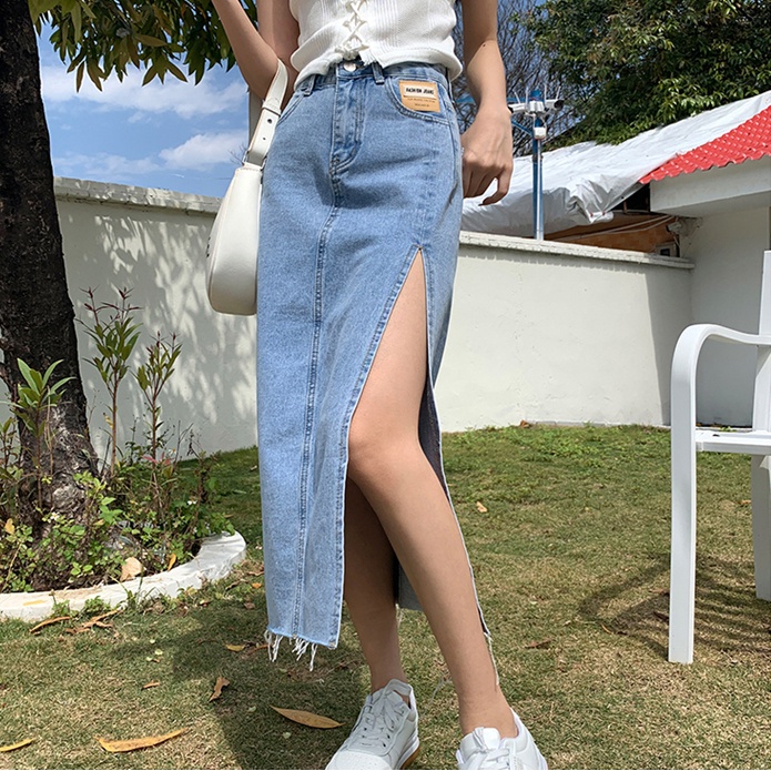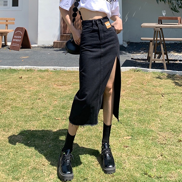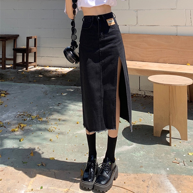 rok korean style rok jeans panjang rok a line rok 7/8 jeans high waist rok belah samping rok span jeans rok denim panjang jumbo