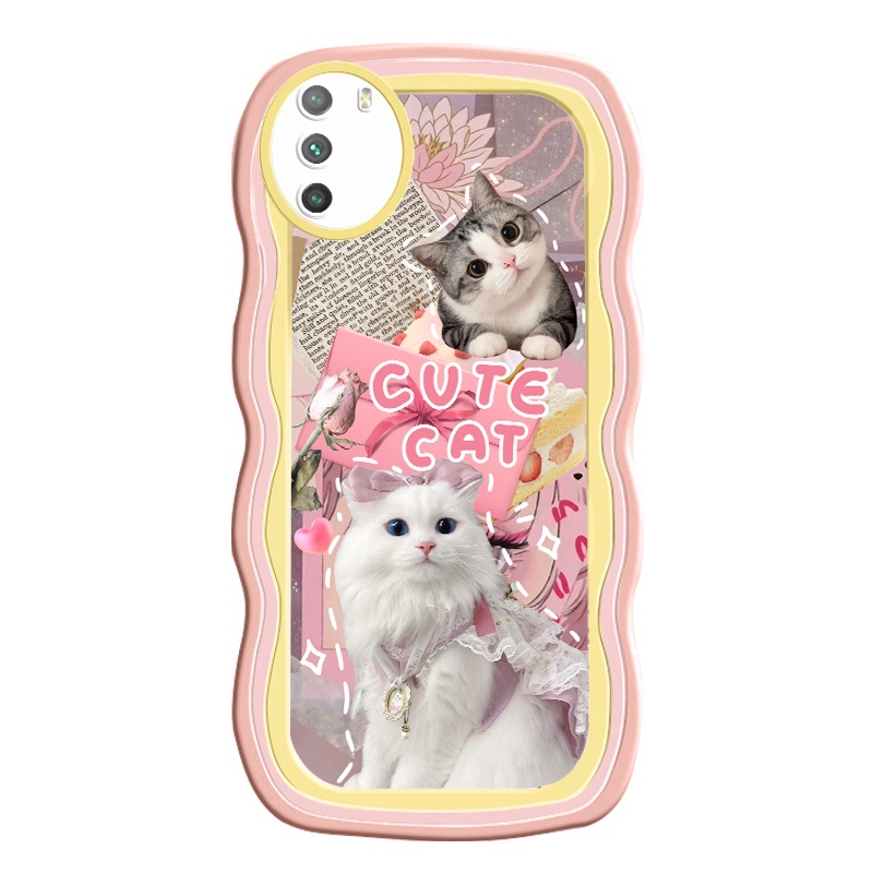 JVIRAG For Poco Casing For Poco M3 X3 X3 Pro X3 NFC C40 X3 GT M5 F4 For Redmi K40S K50 K50 Pro M4 Pro Casing Hp Teka-teki Jigsaw Kucing Lucu Popular Bingkai Bergelombang Silikon SoftCase