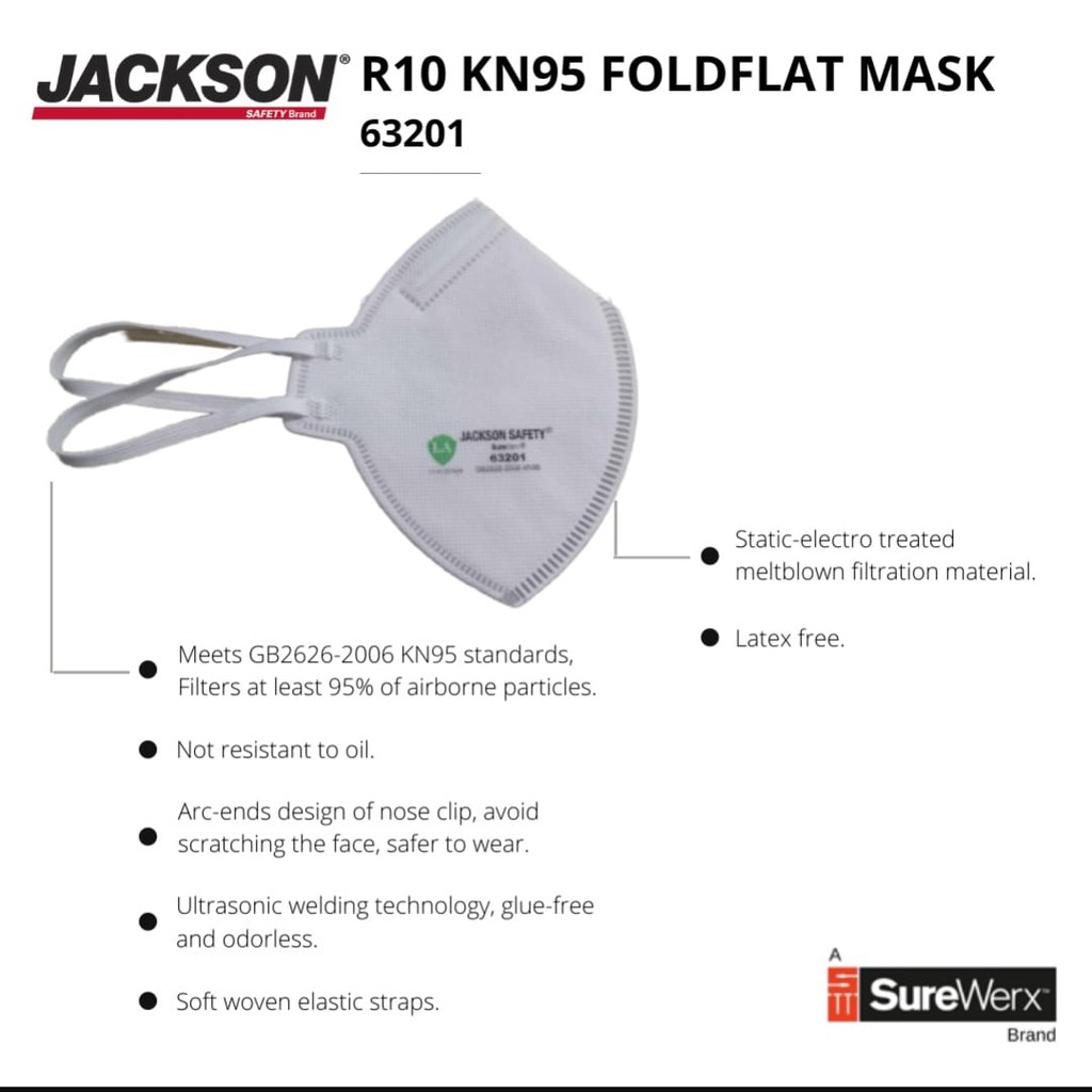 Jackson Safety 63201 R10 KN95 Foldflat Mask Respirator Masker Respirator