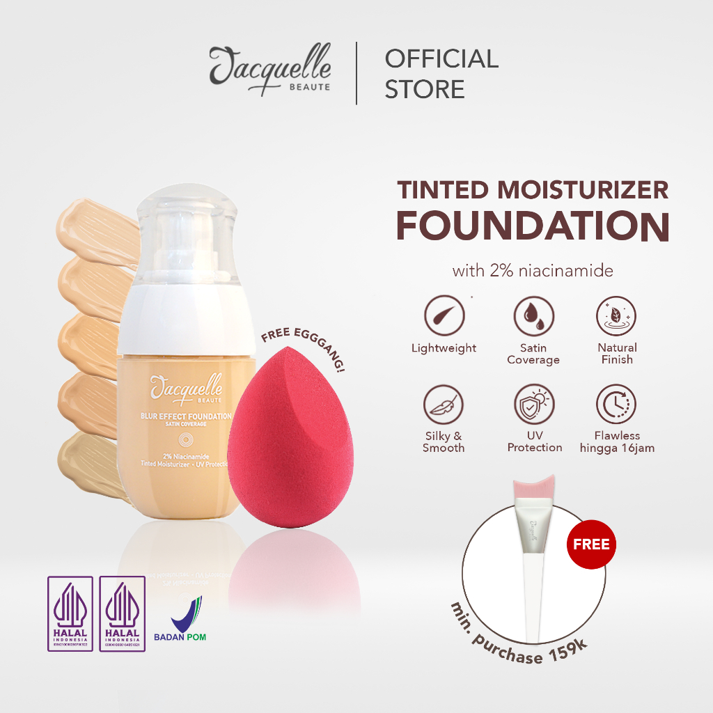 Jacquelle Blur Effect Foundation - Skincare in Foundation - Liquid Foundation Satin Coverage - Free Beauty Sponge