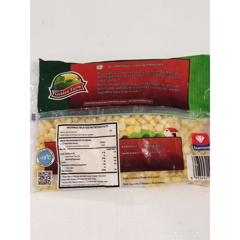 Jagung pipil beku / jagung manis / corn kernel Golden Farm 500 gram