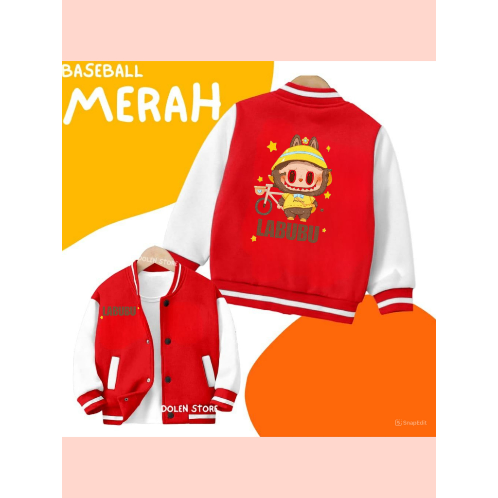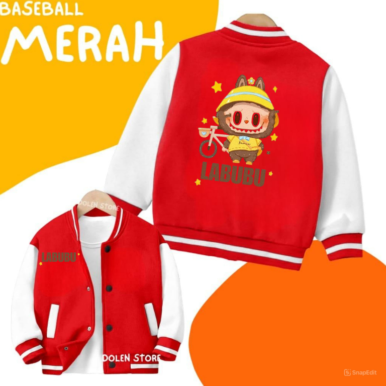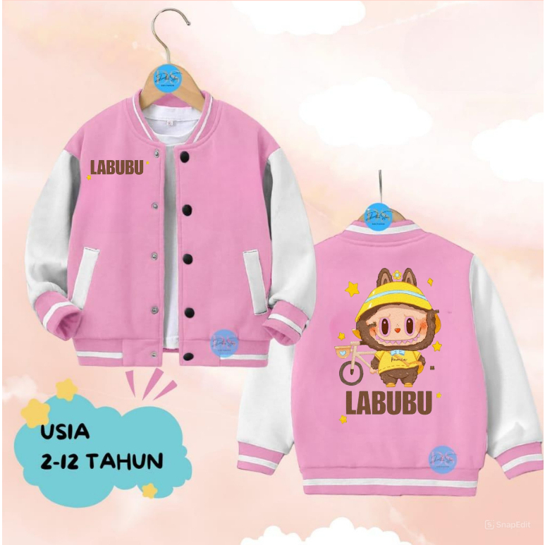 Jaket Anak Perempuan Model Basebal/Varsity Motif Labubu Bahan Fleece Model Terbaru jaket anak Viral Usia 2-12 Tahun