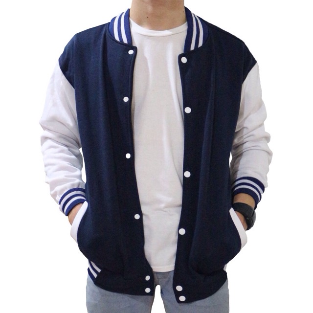 Jaket Baseball Varsity Polos Pria Wanita - Jaket Basebal Varsity Full Kancing Kekinian 2021