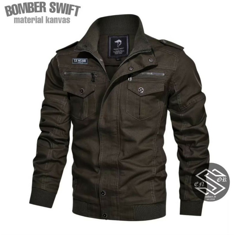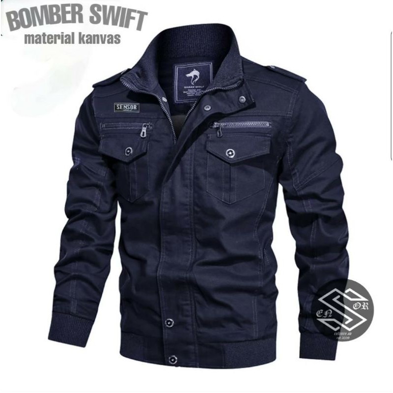 Jaket Bomber Pria Distro Bandug Jaket Motor Basebal bahan Canvas Tebal