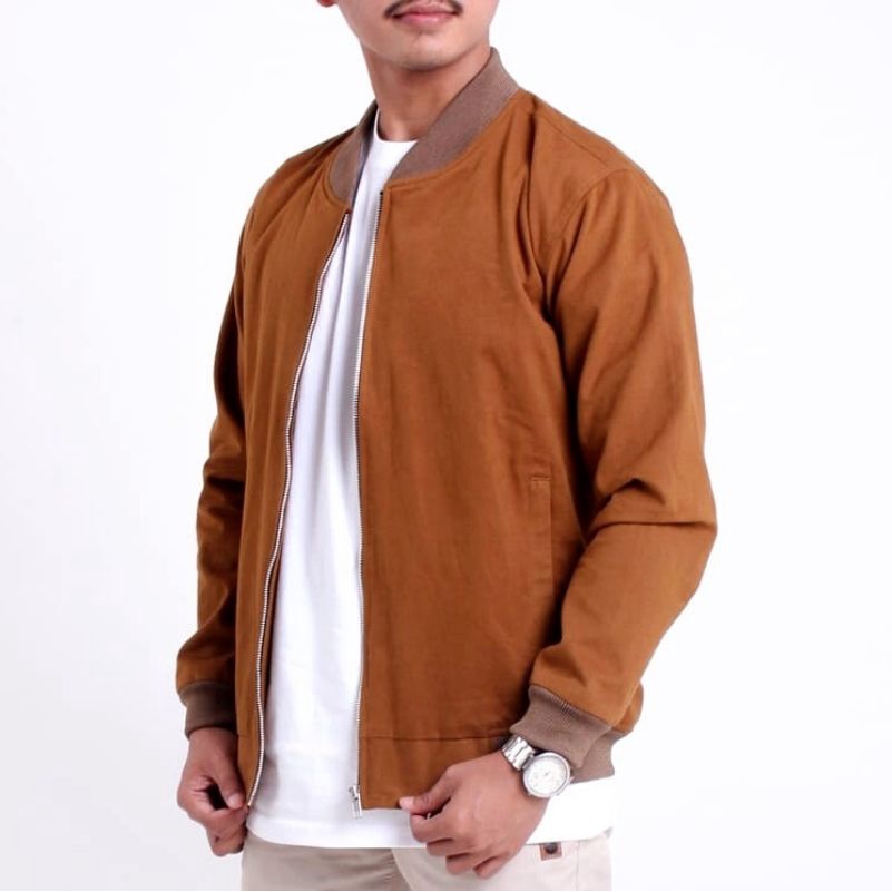 Jaket Bomber Pria Varsity Jacket Resleting Dari Bahan Canvas Untuk Berbagai kegiatan Size M L XL XXL