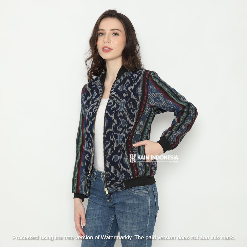 Jaket Bomber Tenun Wanita Rachel Jasmine Biru