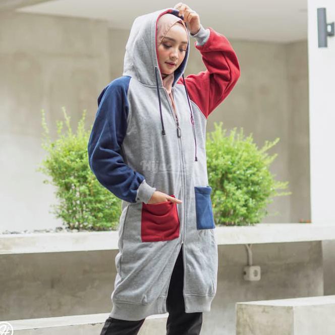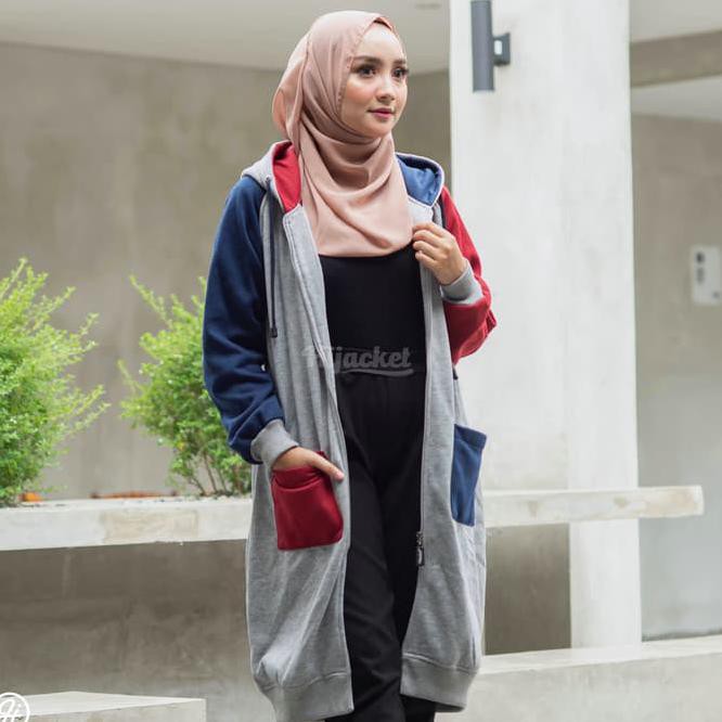 Jaket Hijab Hijacket Groovy Marvelous Original Jaket Muslimah Premium - Navy, AllSize M fit L
