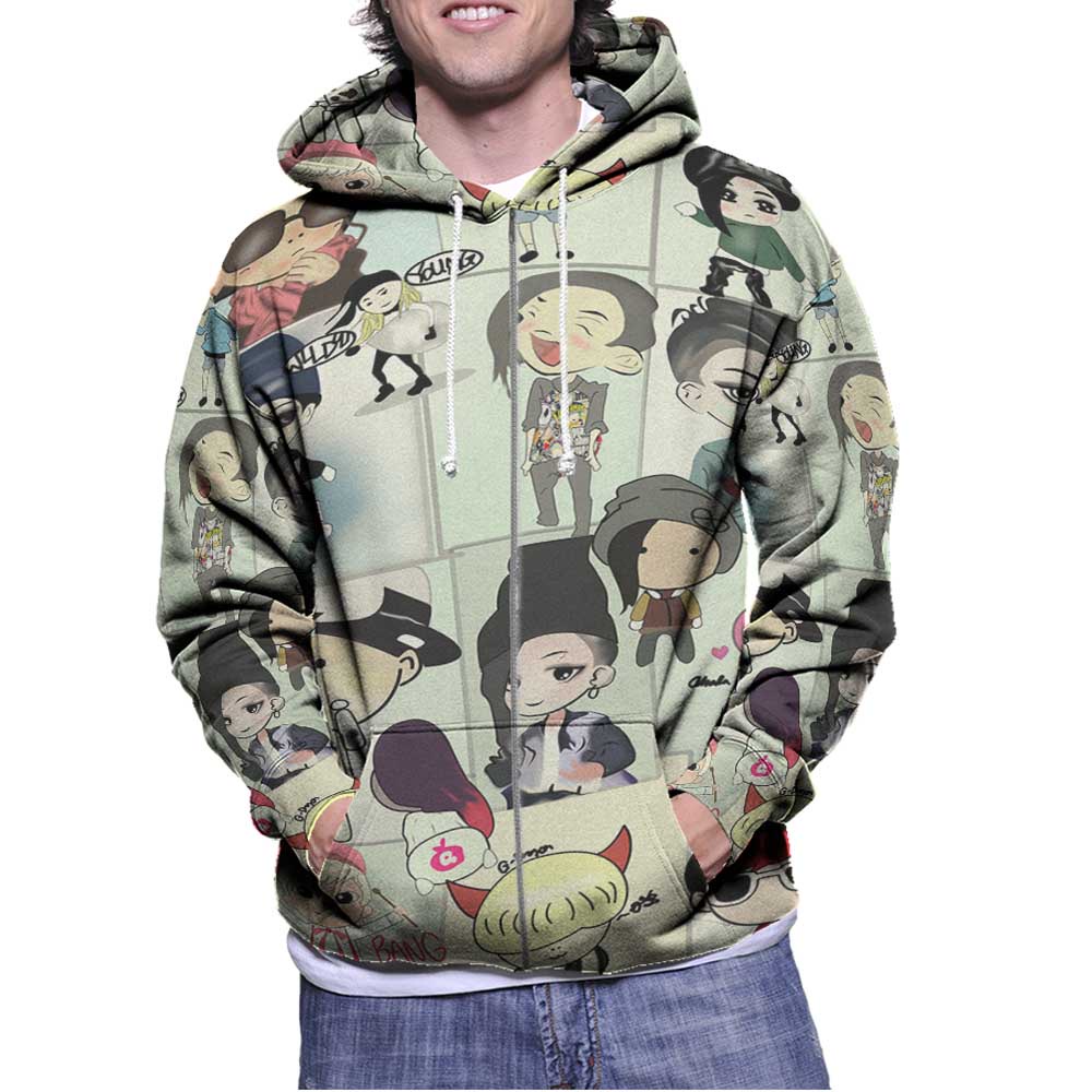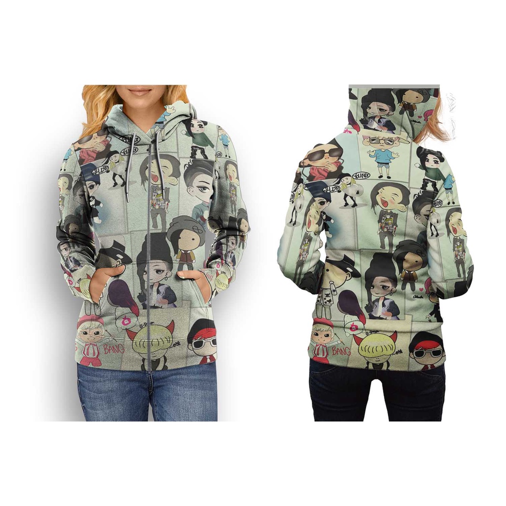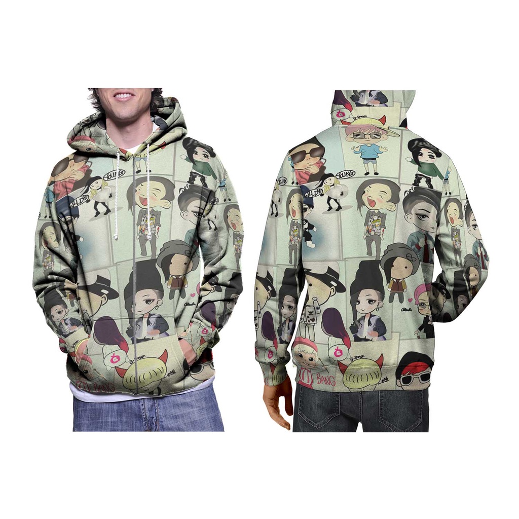 Jaket Hoodie Fullprint Big Bang Korean Boyband Idol Chibi Cartoon Bahan Polyester Jersey Dengan Ritlsleting (Zipper Hoodie)