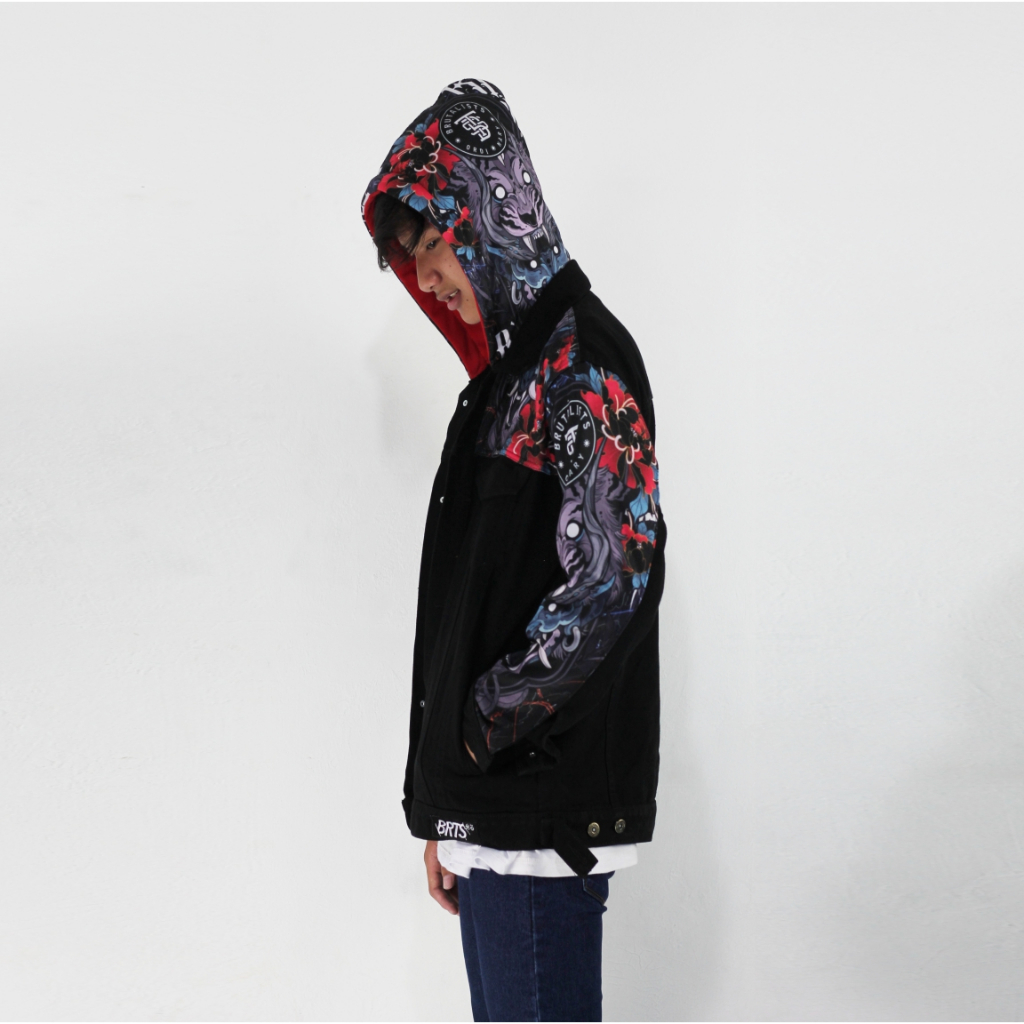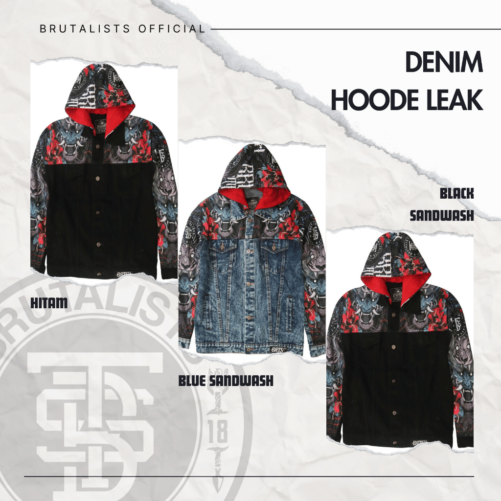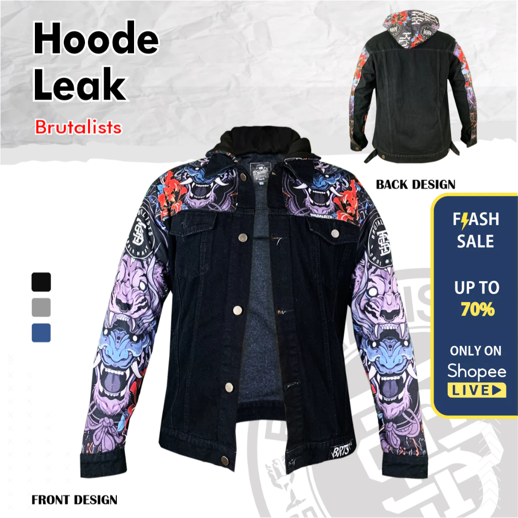 Jaket Hoodie Jeans Denim Jacket Pria Wanita Motif HOODE LEAK Brutalist