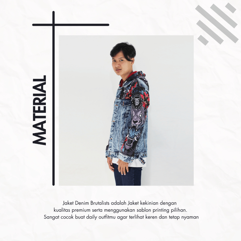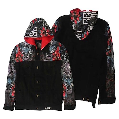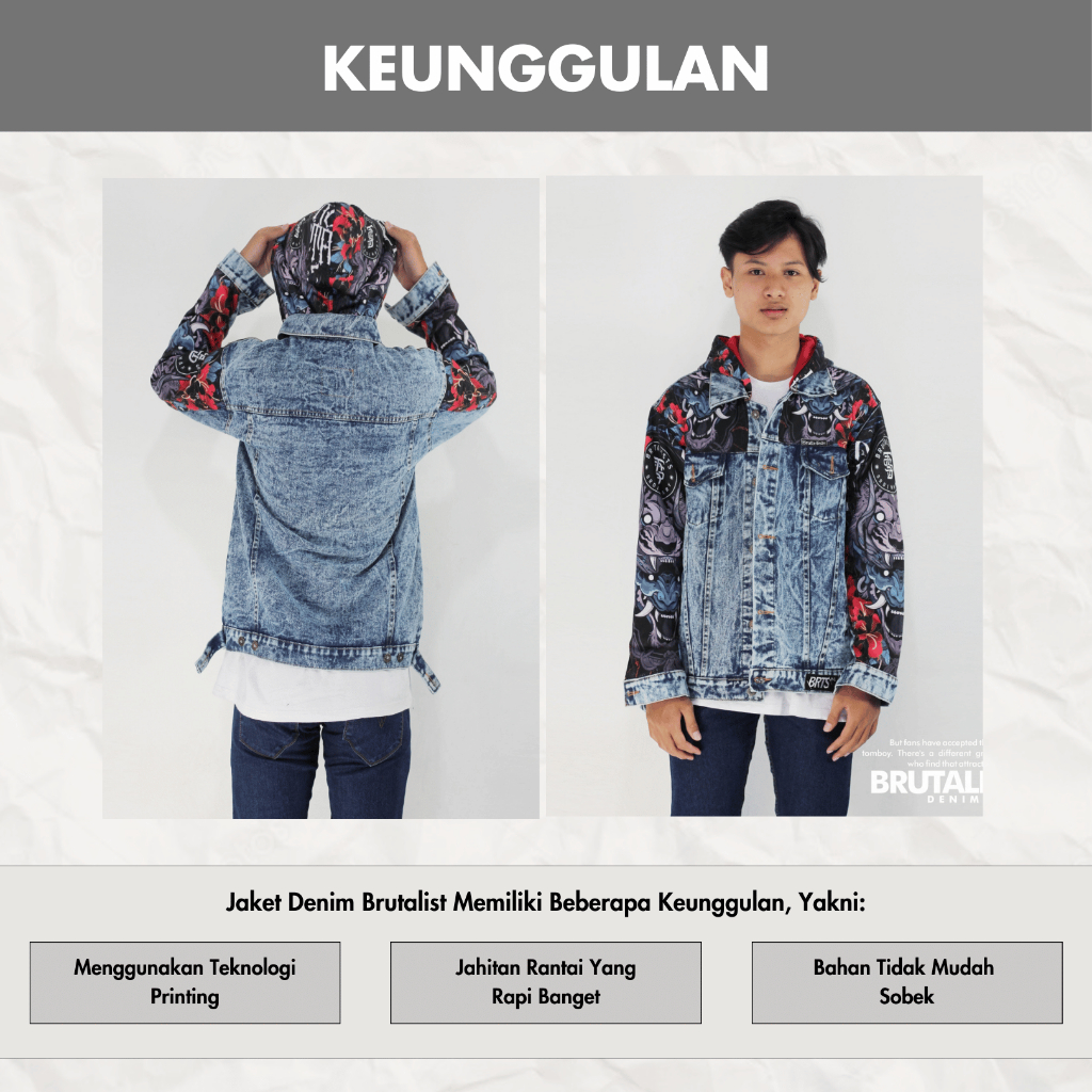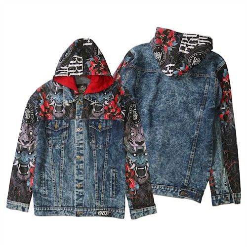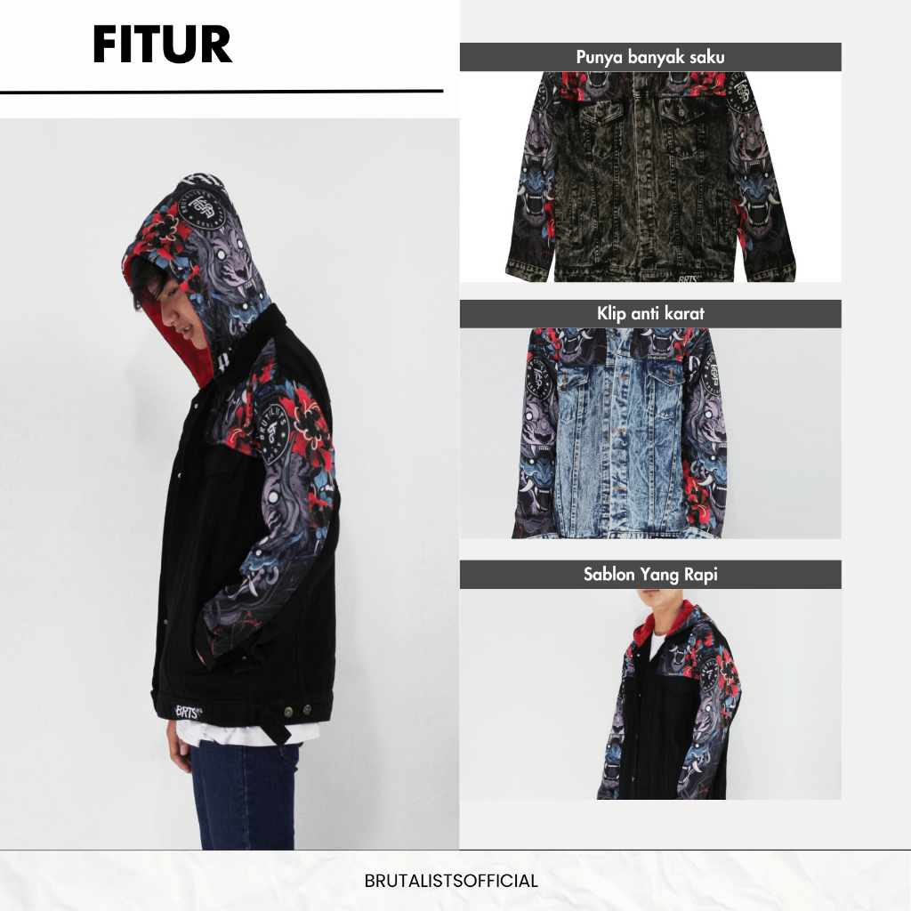 Jaket Hoodie Jeans Denim Jacket Pria Wanita Motif HOODE LEAK Brutalist