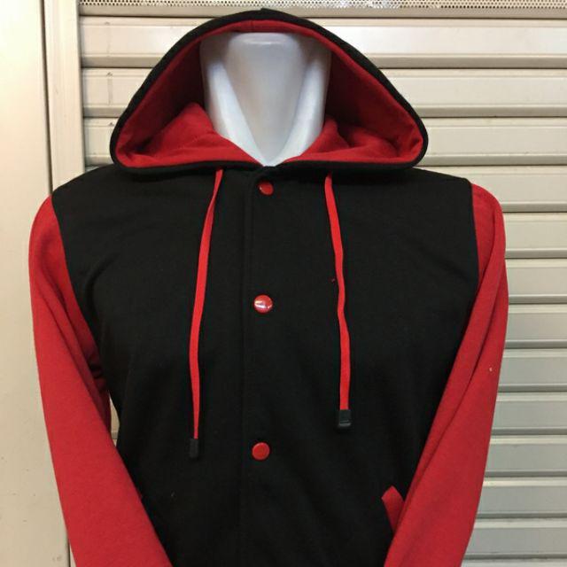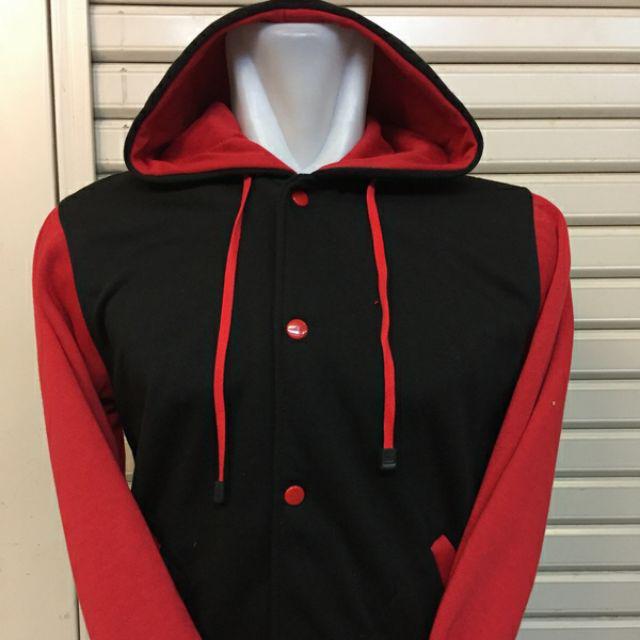 Jaket Hoodie Varsity Baseball Hitam Merah