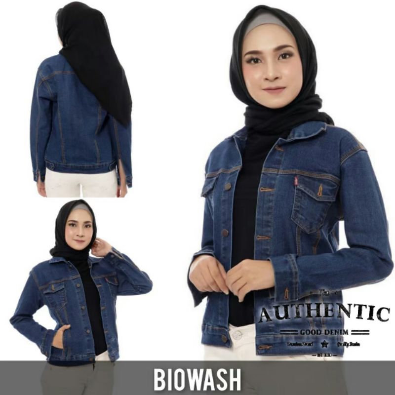 Jaket Jeans Cewek/wanita kekinian warna Hitam Garmen size m l xl