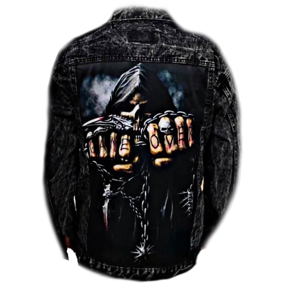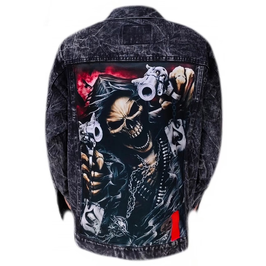 Jaket Jeans Printing Sandwash- Jaket Denim Pria Motif- Jaket Jeans Pria- Jeans Denim - Jaket Pria Terbaru