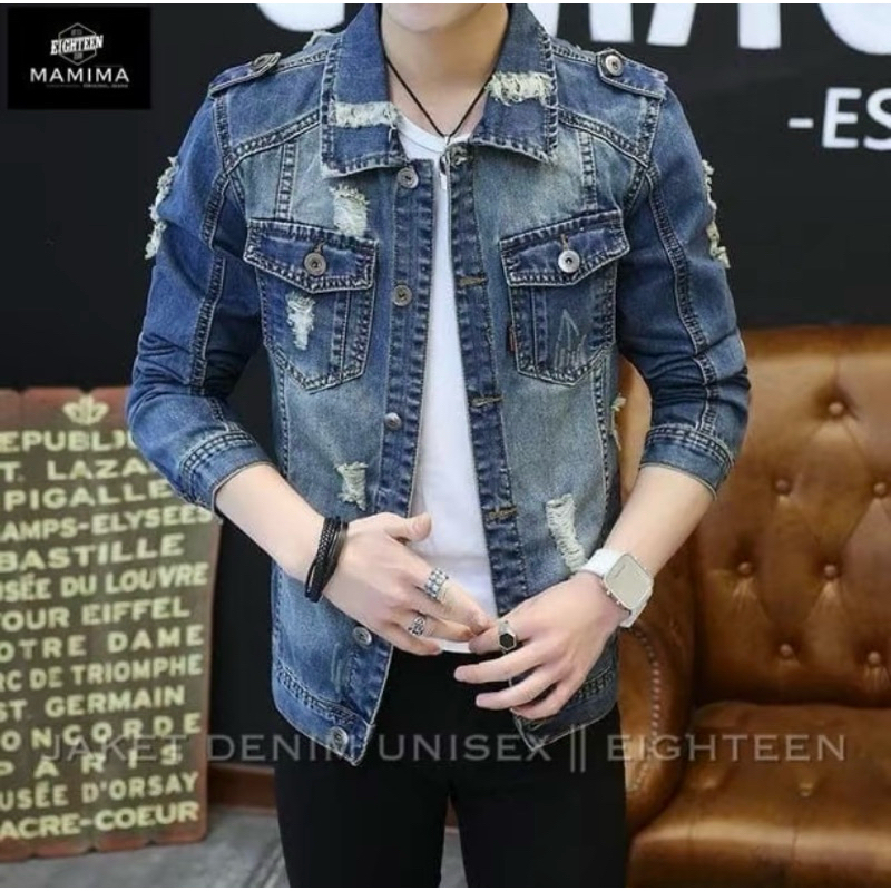 Jaket Jeans Sobek Jaket Denim Pria Motif Sobek Jaket Model Kekinian Murah Keren Tebal