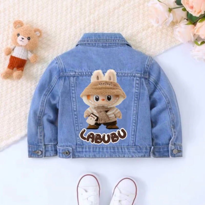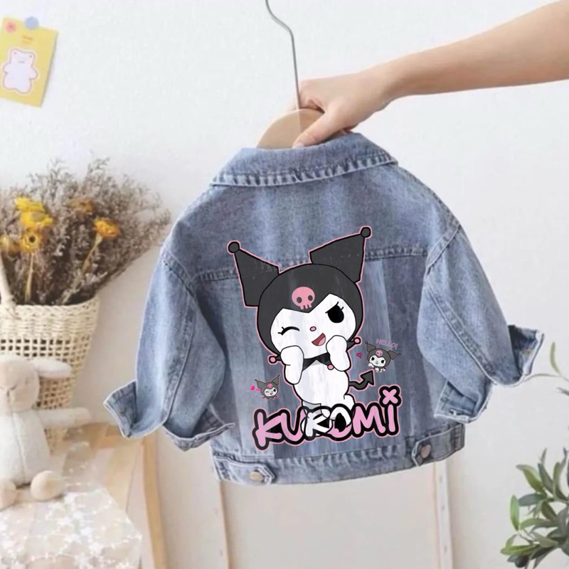 Jaket Labubu Viral Anak Jeans Gambar Kuromi Ungu