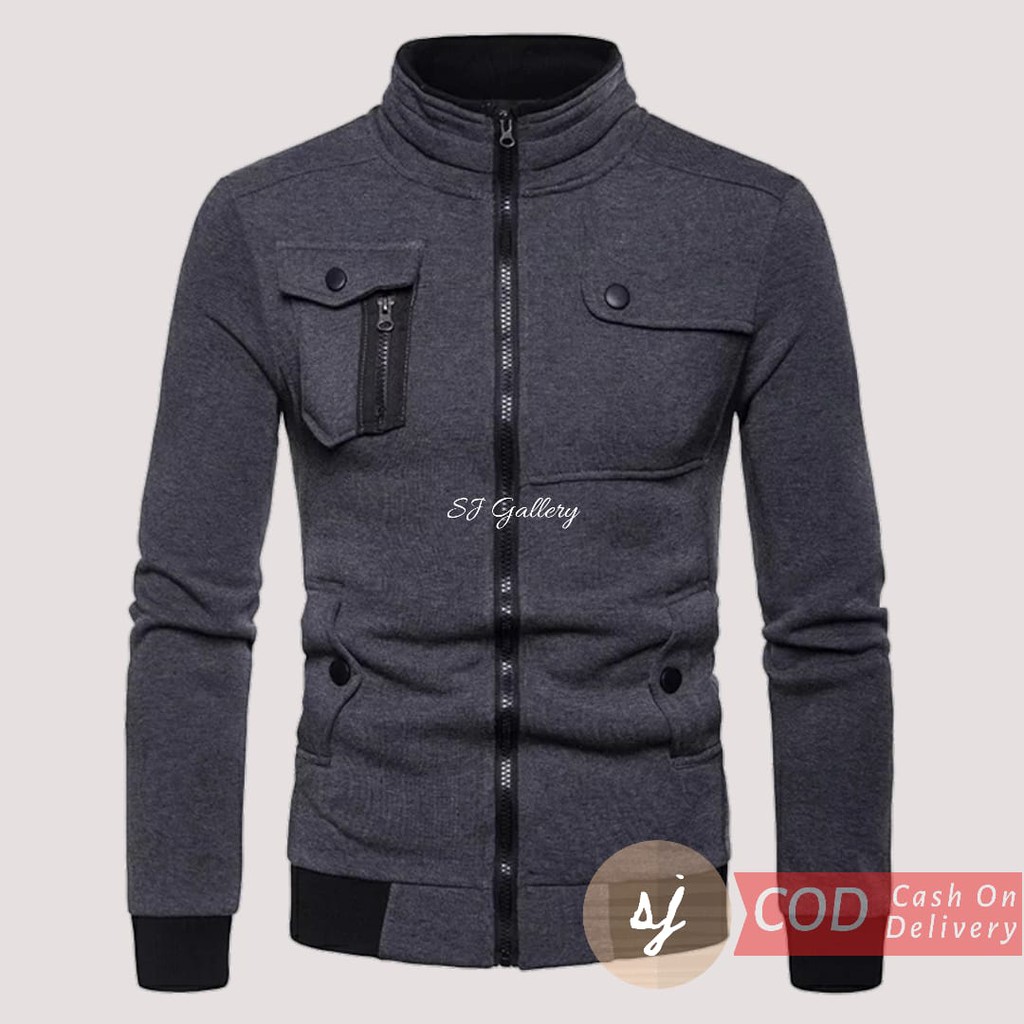 Jaket Pria Korea Fleece Kancing MF Terbaru