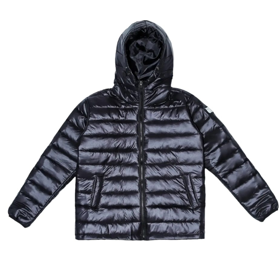Jaket Puffercoat Hitam Bahan Parasut Despo Metalik Jaket Kembung Kekinian