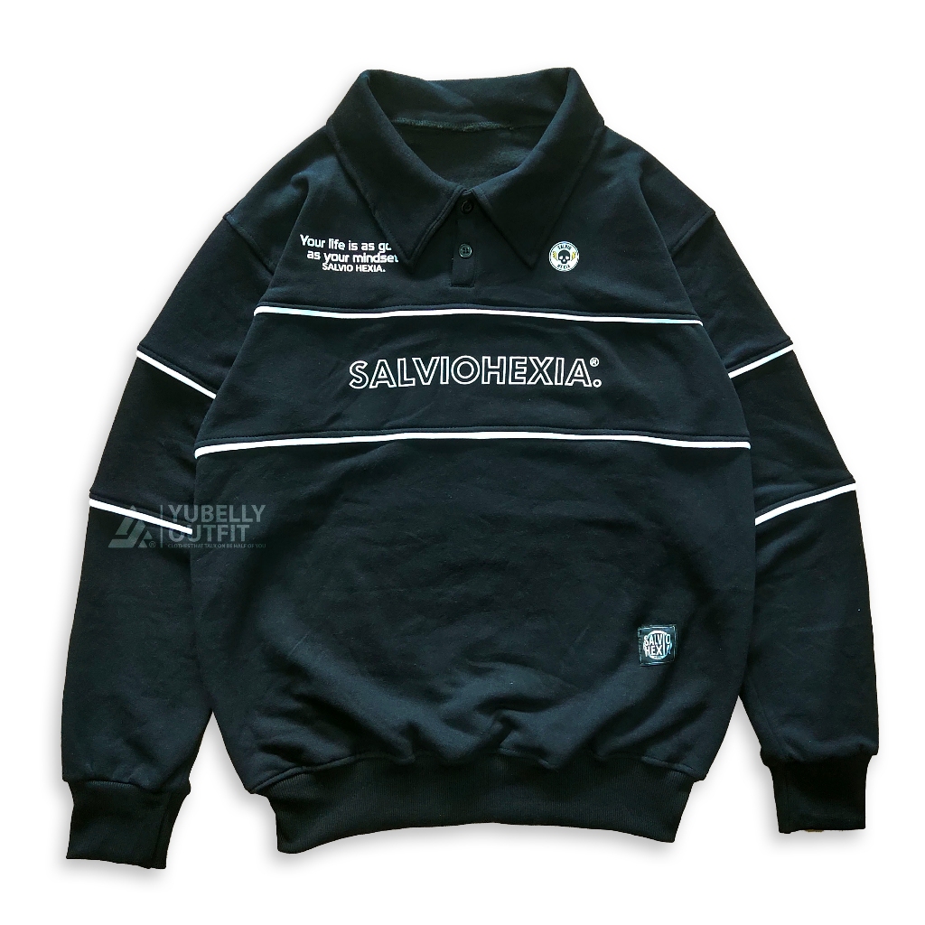 Jaket Sweater Rugby Vintage Kerah Halfzip Distro Korean Style Pria Wanita | Sweater Crewneck Kerah Lipat Kekinian | Rugby Sweatshirt Polo Kerah Zipper Unisex