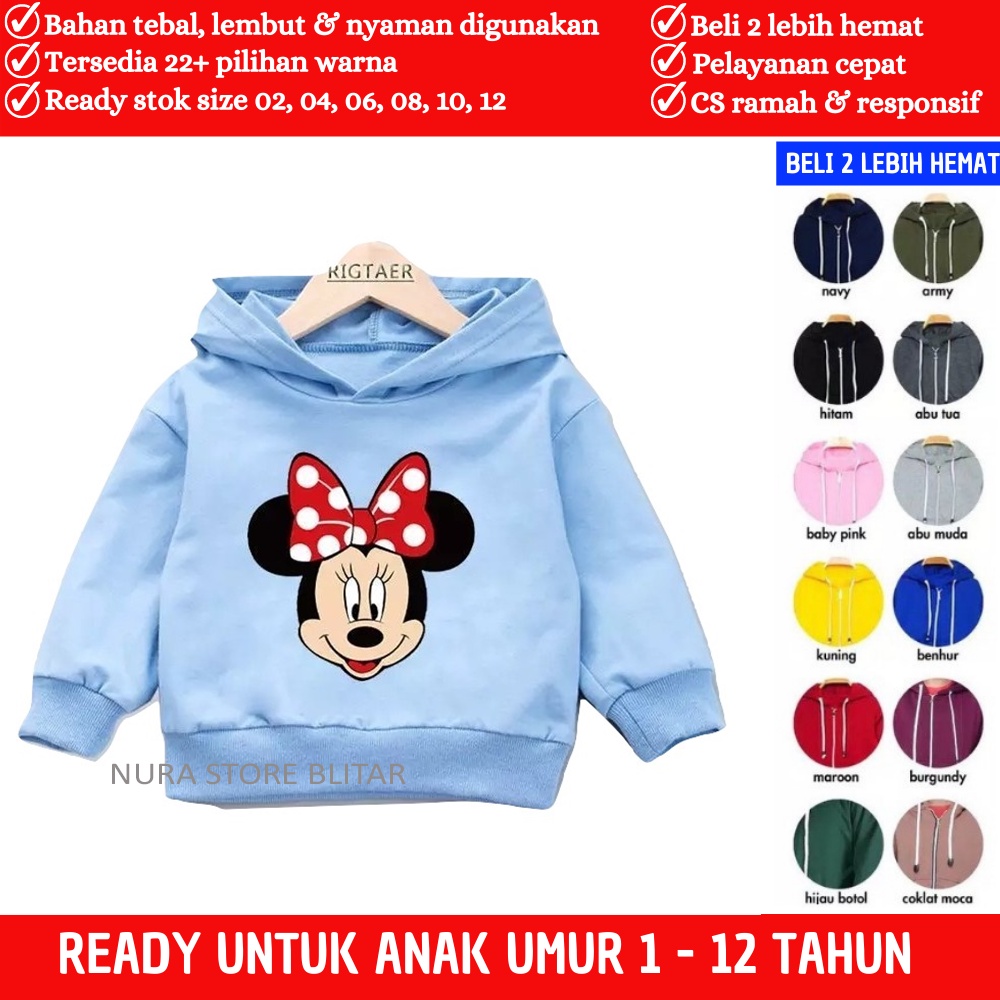 Jaket Sweter Anak Cewek Cowok Branded Laki Perempuan Kembar Bayi Balita Kecil Model Minie Mickey Mouse Lucu Hodi Tanggun