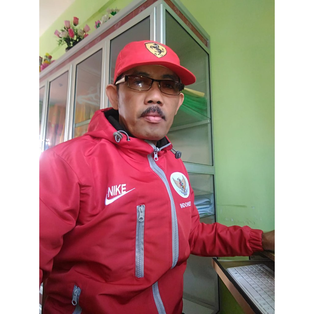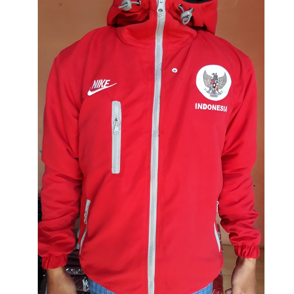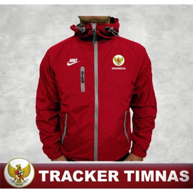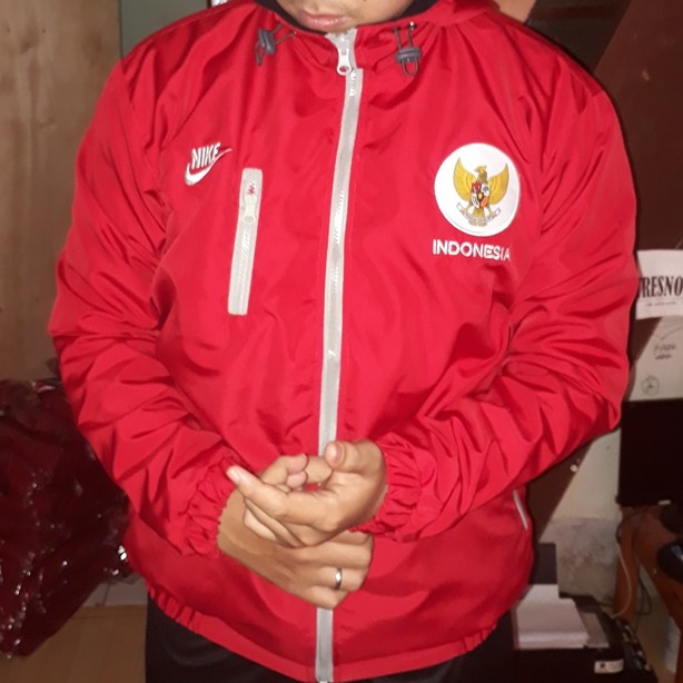 Jaket Tracker Timnas Indonesia Sport Windbreaker Elegant Jaket Murah Bahan Taslan Warna Merah Terang