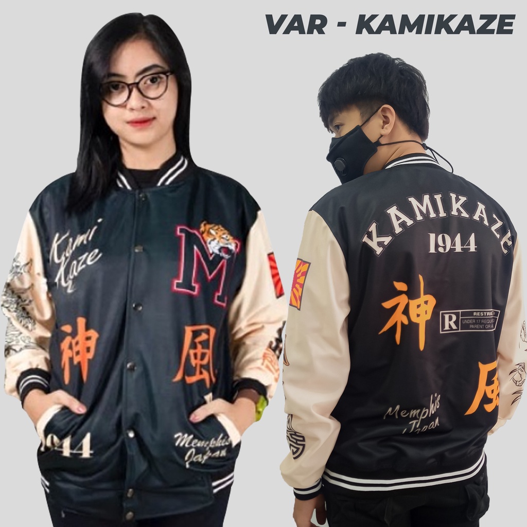 Jaket Varsity Jacket Varisty KAMIKAZE Basketball Gambar Naga Retro Bassball Motif M&M Pria Wanita Bahan Jersey Original Viral dan Kekinian Terbaru