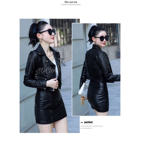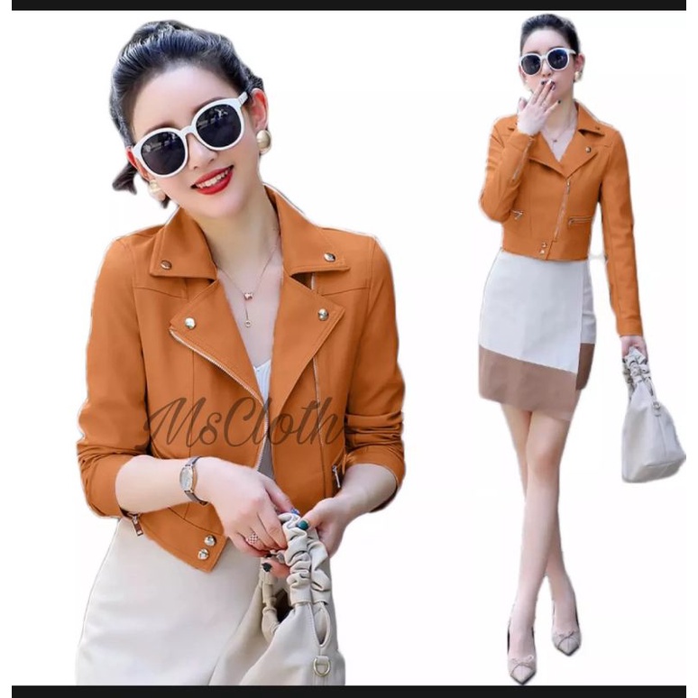 Jaket crop putih/ jaket semi kulit wanita /jaket kulit sintetis