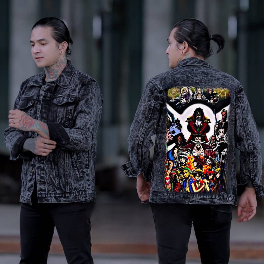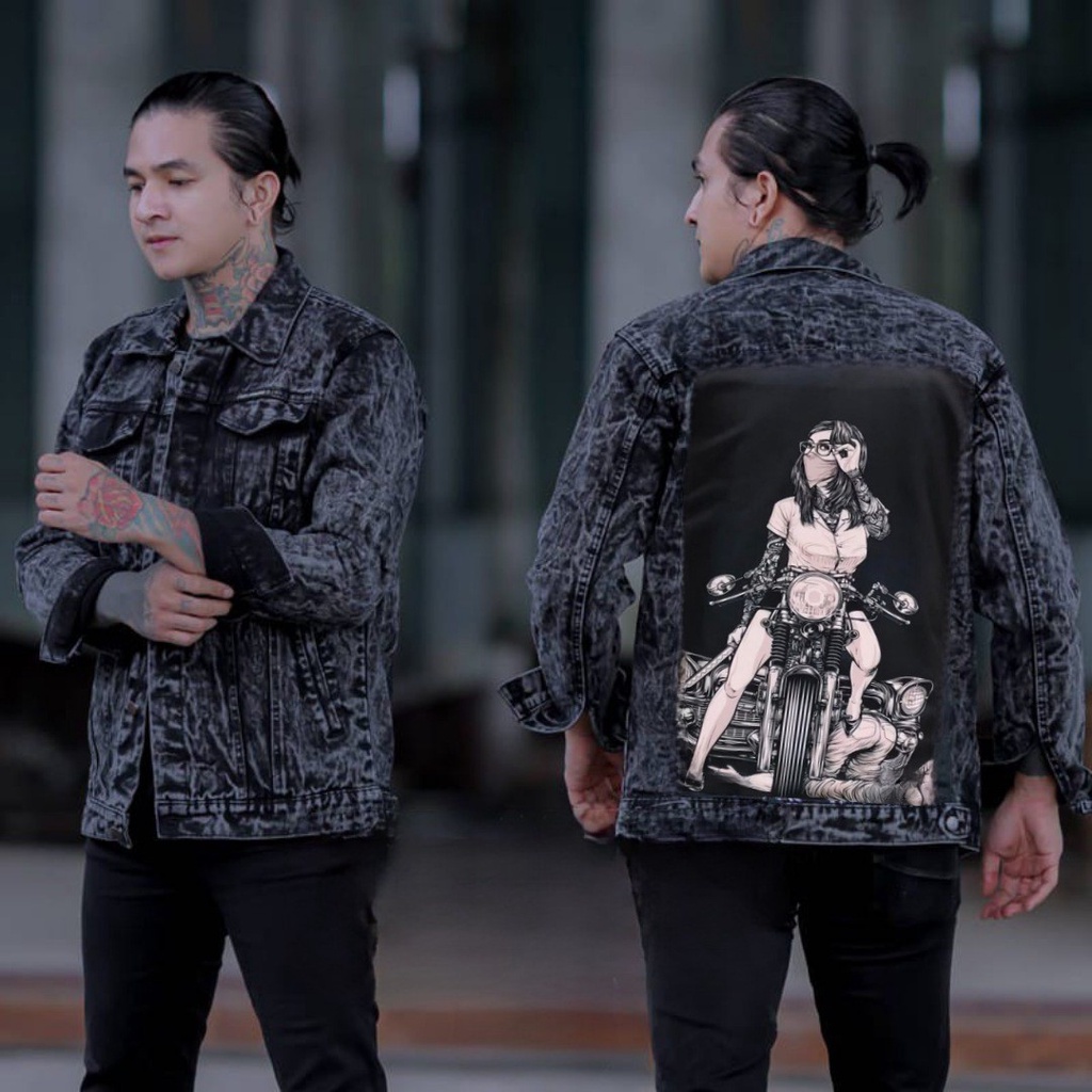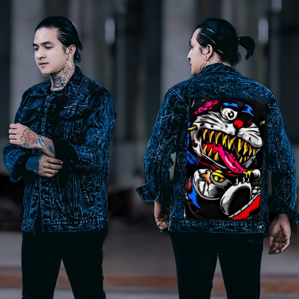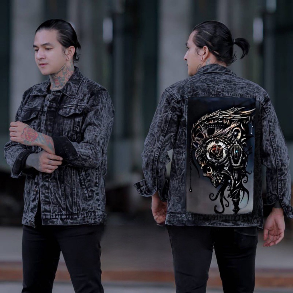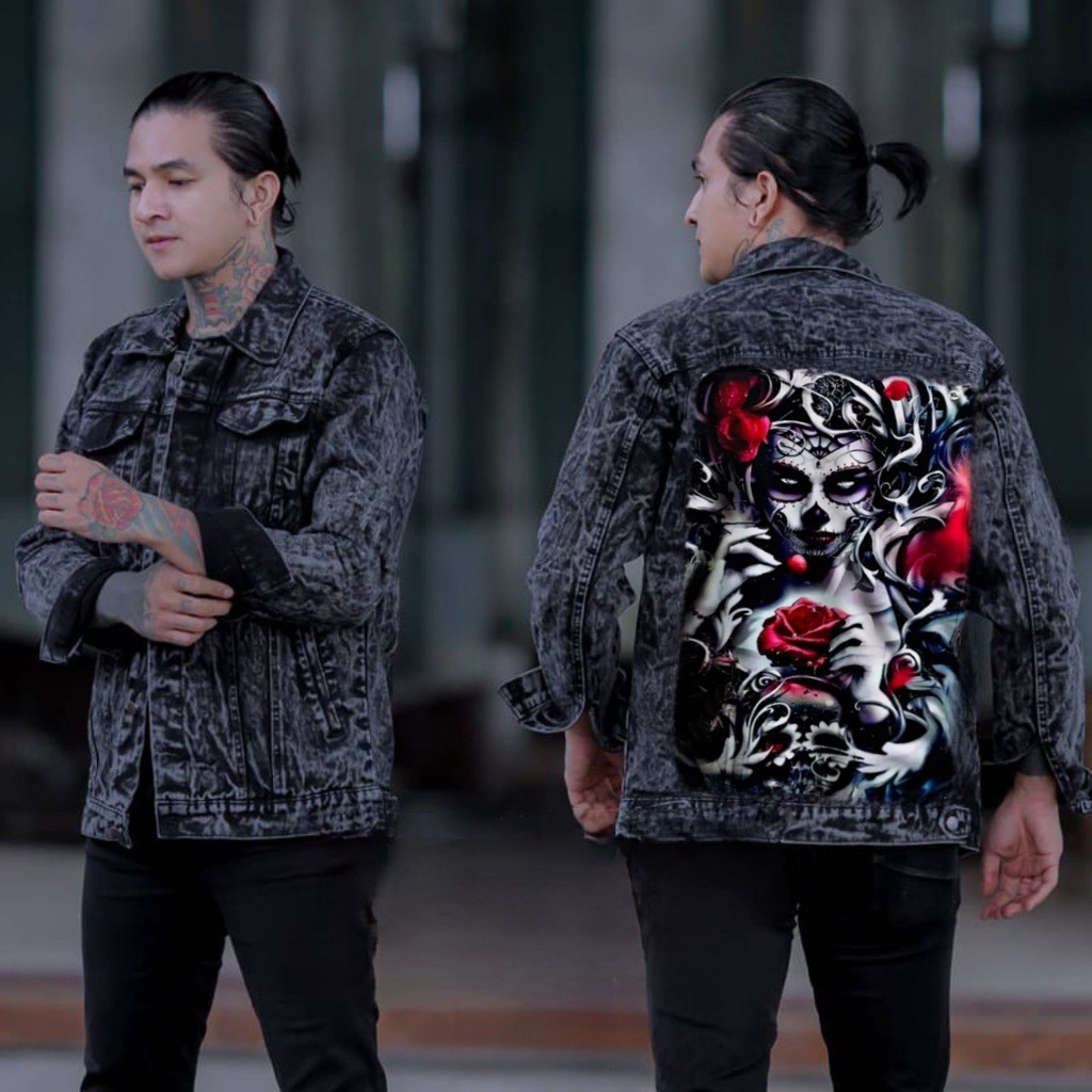 Jaket jeans printing denim pria/jaket jeans printing gambar belakang/jaket gambar tengkorak pria/jaket pria terbaru 2025 kekinian viral-Amirahstore21