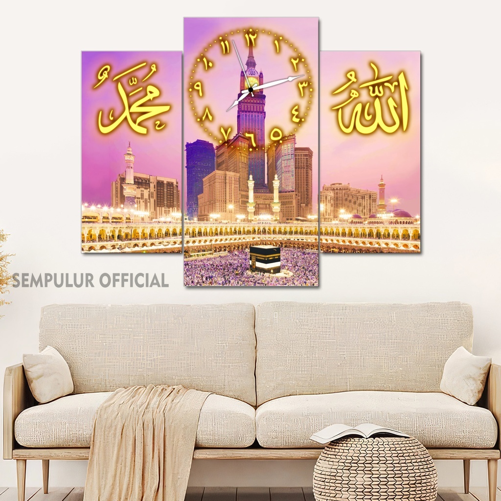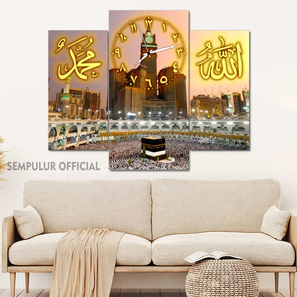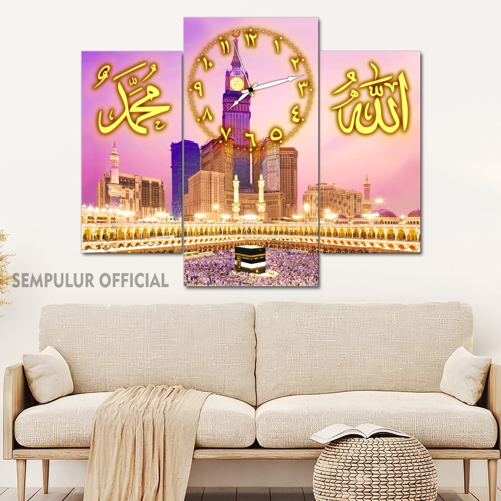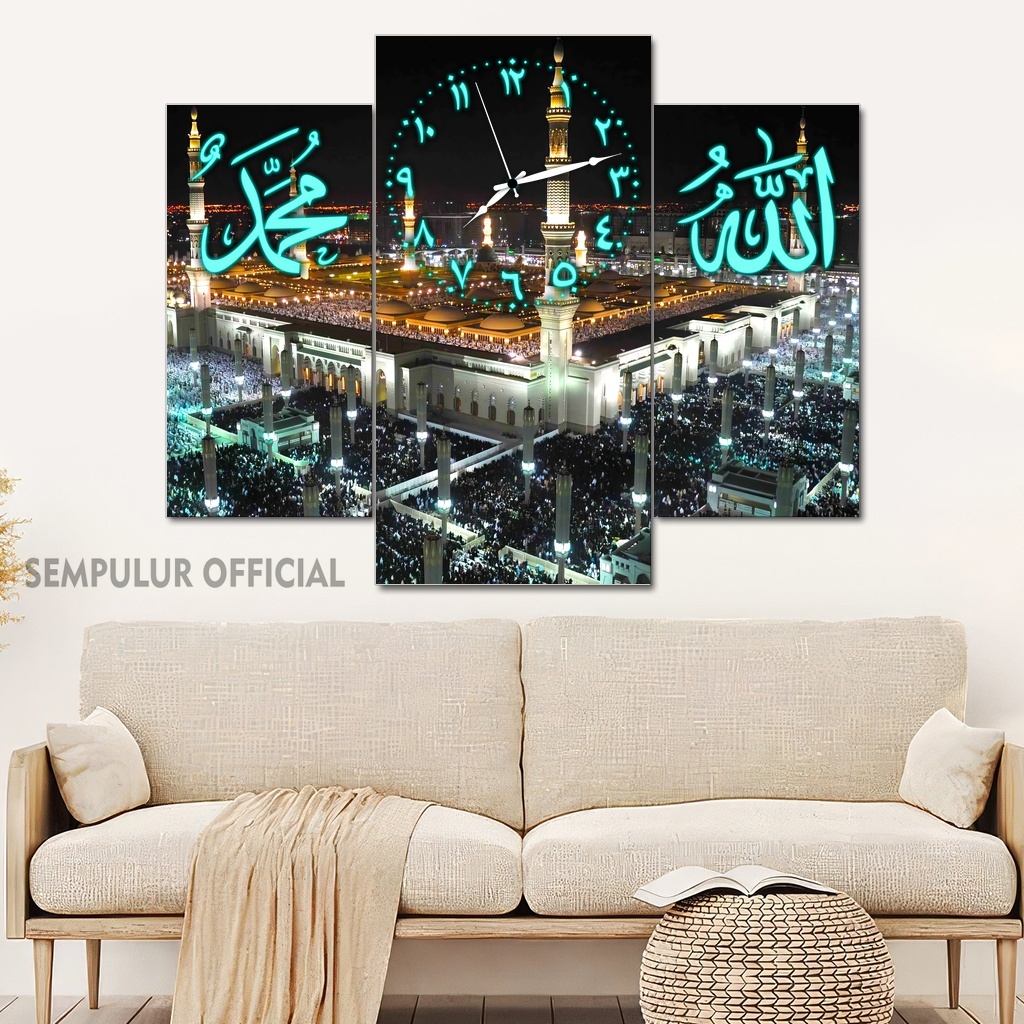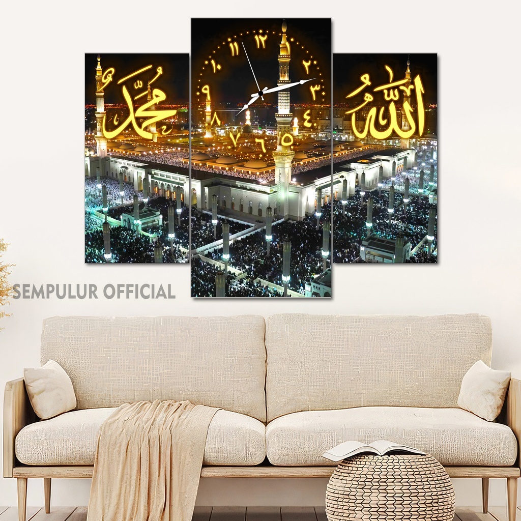Jam Aesthetic Muslim Makkah Madinah 50X40 Multipanel / Pajangan Jam Dinding Kaligrafi Allah Muhammad / Hiasan Jam Dinding Kamar Tidur Aesthetic / Pajangan Jam Dinding Dapur /KJD|KBCO8