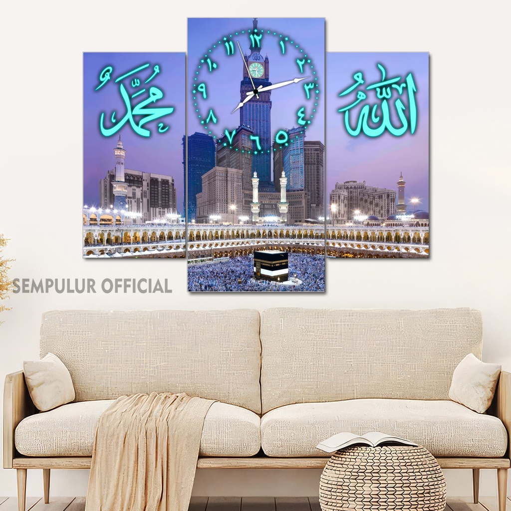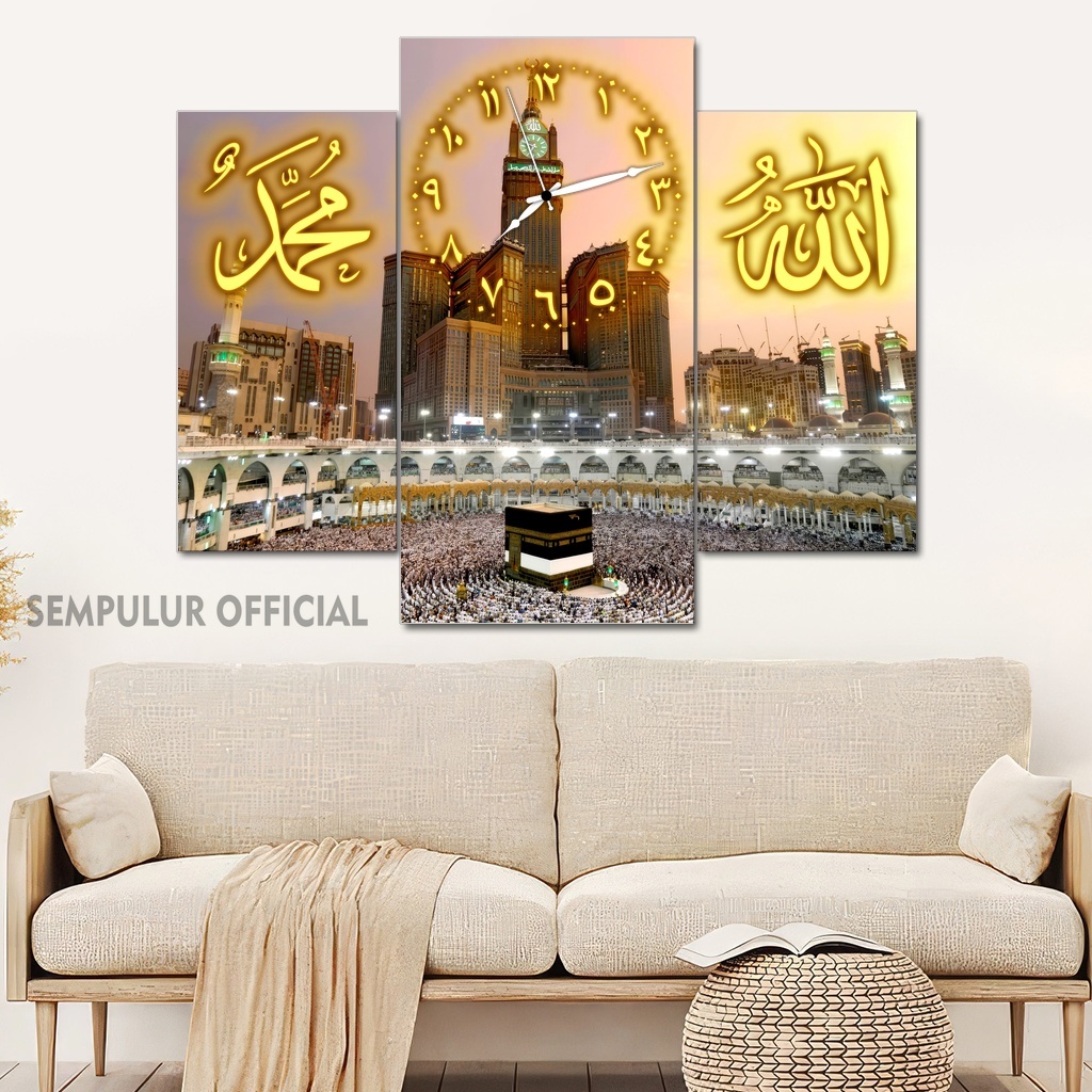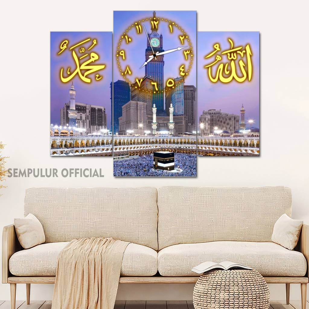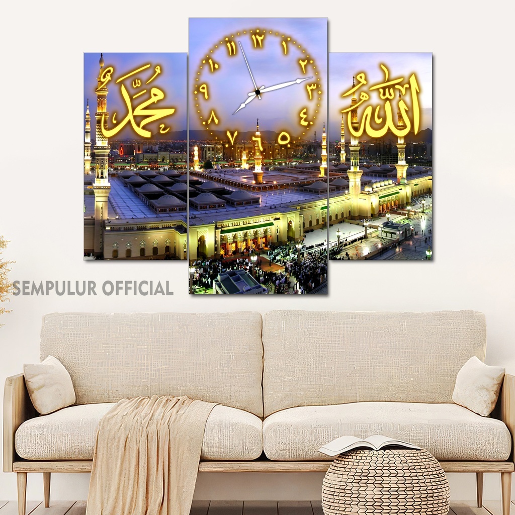 Jam Aesthetic Muslim Makkah Madinah 50X40 Multipanel / Pajangan Jam Dinding Kaligrafi Allah Muhammad / Hiasan Jam Dinding Kamar Tidur Aesthetic / Pajangan Jam Dinding Dapur /KJD|KBCO8
