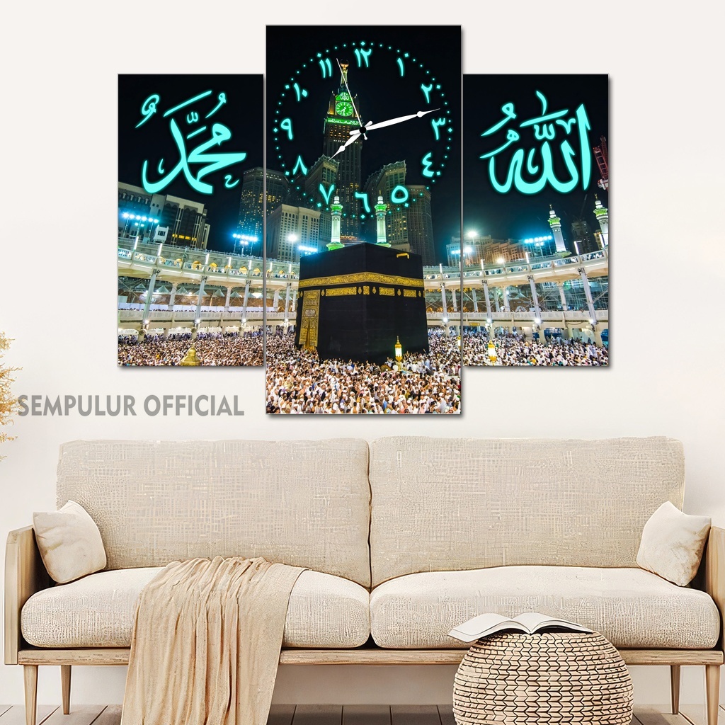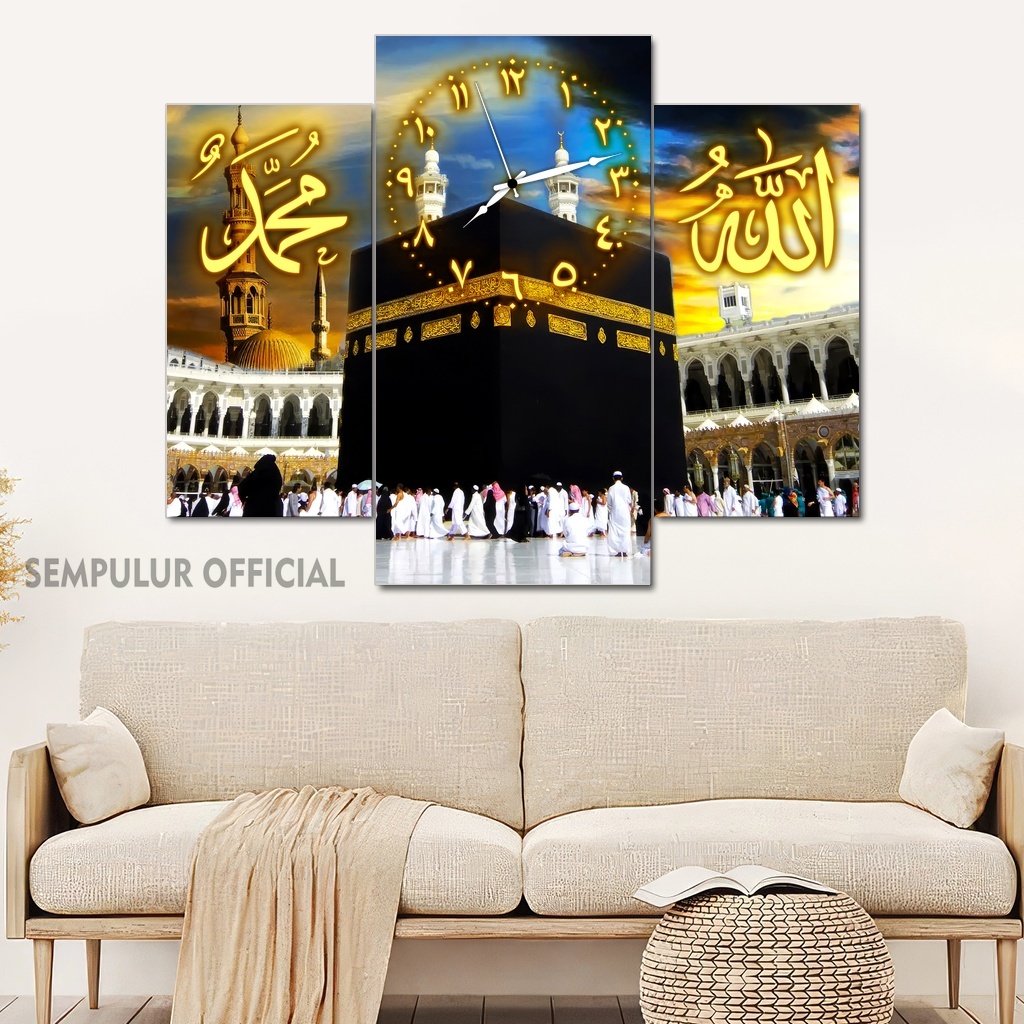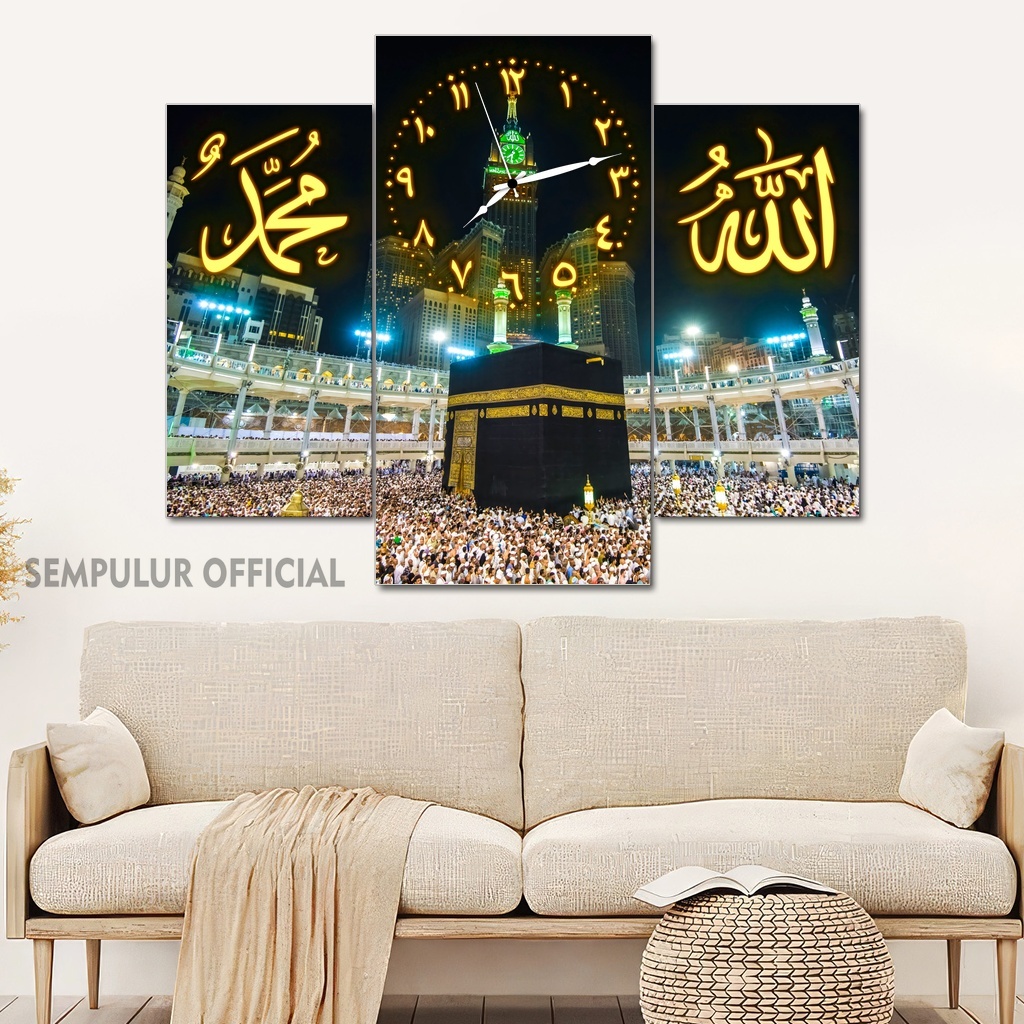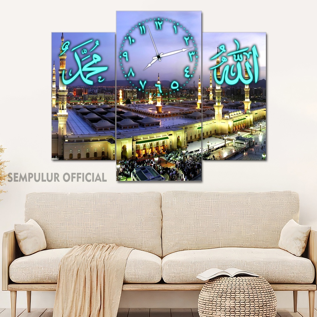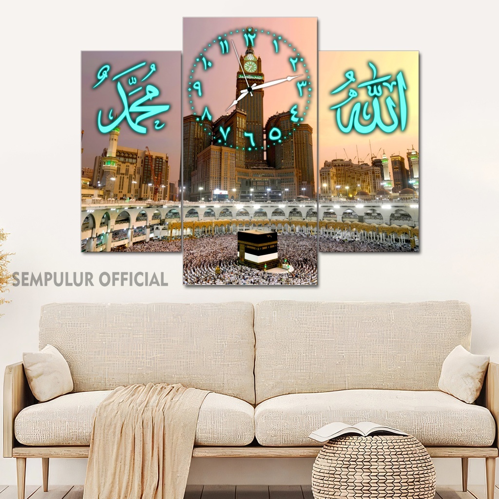 Jam Aesthetic Muslim Makkah Madinah 50X40 Multipanel / Pajangan Jam Dinding Kaligrafi Allah Muhammad / Hiasan Jam Dinding Kamar Tidur Aesthetic / Pajangan Jam Dinding Dapur /KJD|KBCO8
