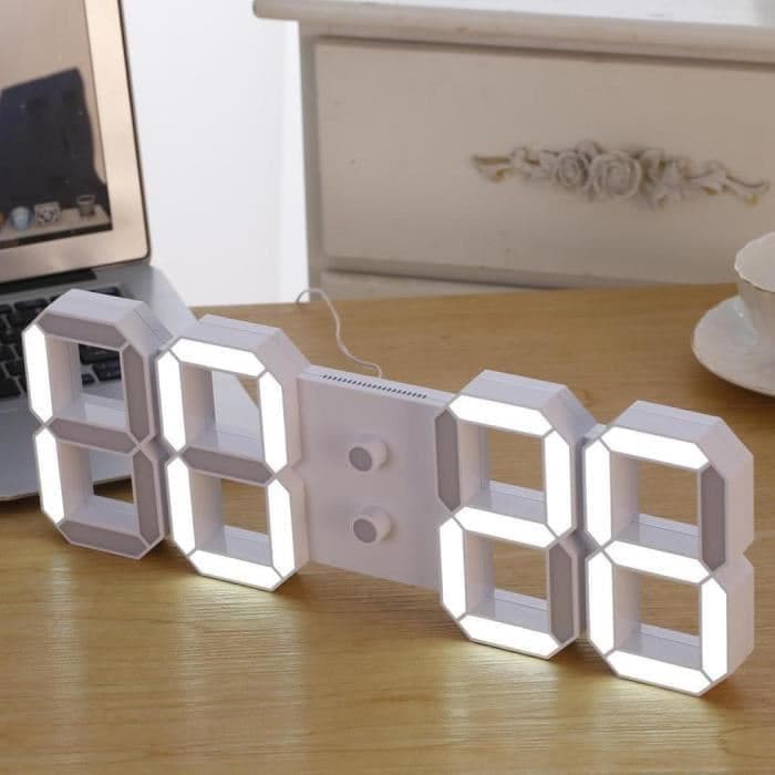 Jam Digital Led Jam Led Jam Meja Jam Dinding Digital unik dan futuris - Putih