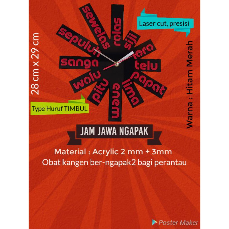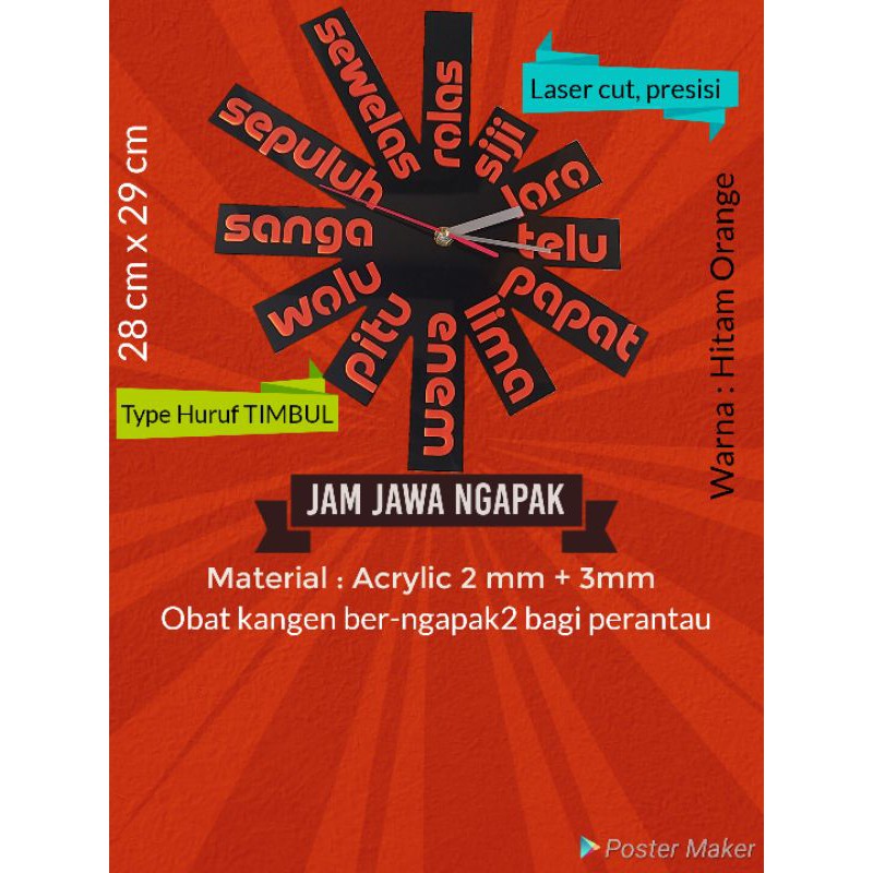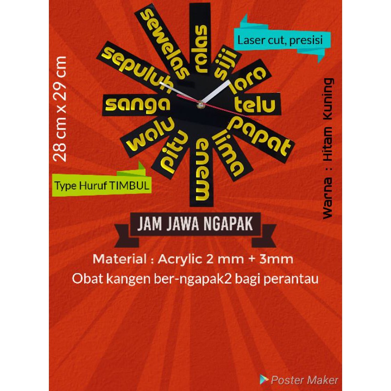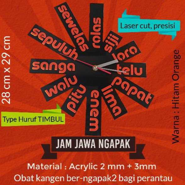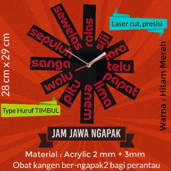 Jam Dinding Bahasa Jawa TIMBUL Akrilik Laser Cut Unik