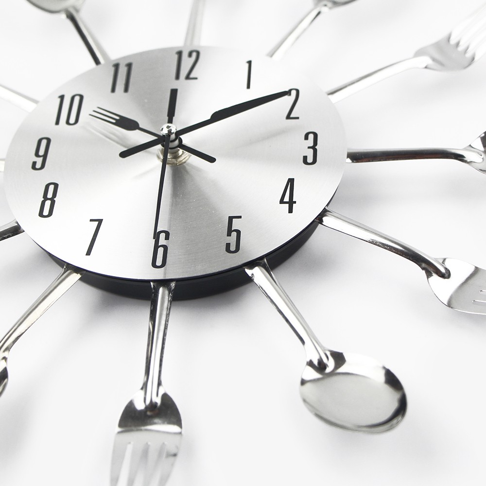 Jam Dinding Besar DIY 3D Model Sendok Garpu - Silver / Jam Dinding Aesthetic / Jam Dinding Tempel / Jam Dinding Unik