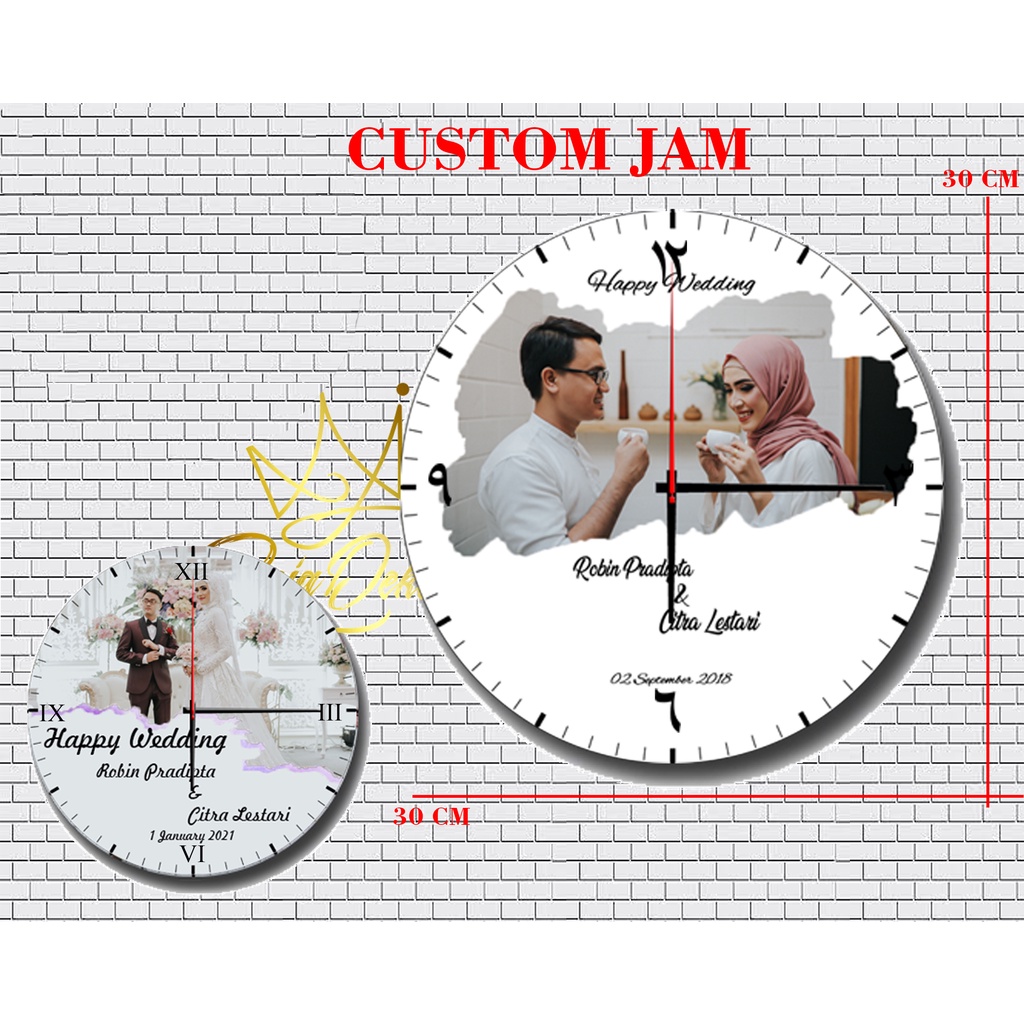 Jam Dinding Kayu Bulat Custom Wedding Theme Kado Pernikahan Free Box dan Baterai rajajamofficial