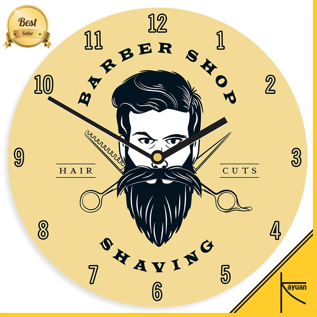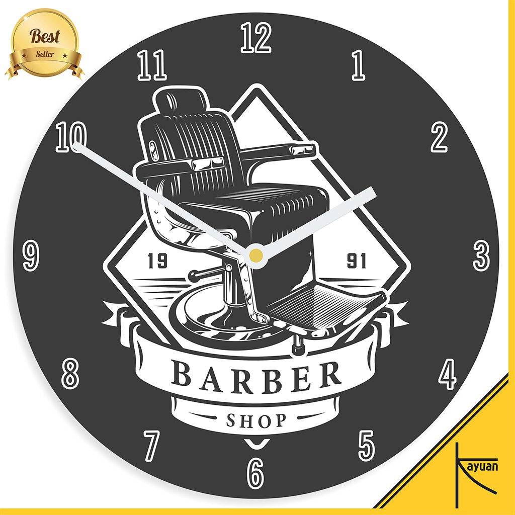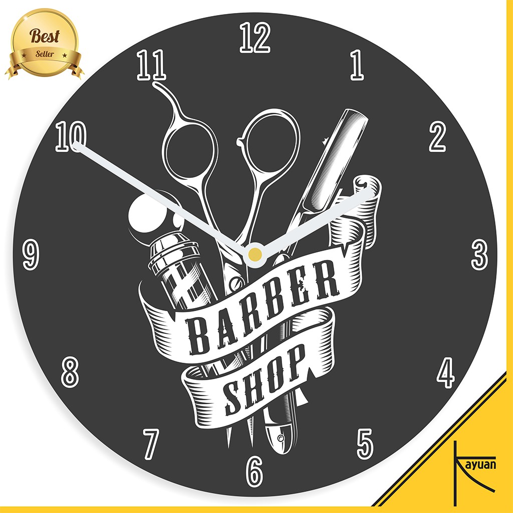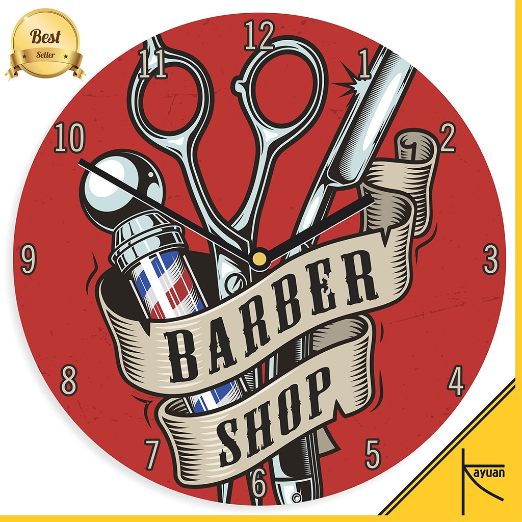 Jam Dinding Kayu Logo Barbershop Barber Shop Tools Vintage Murah Unik - BSP011