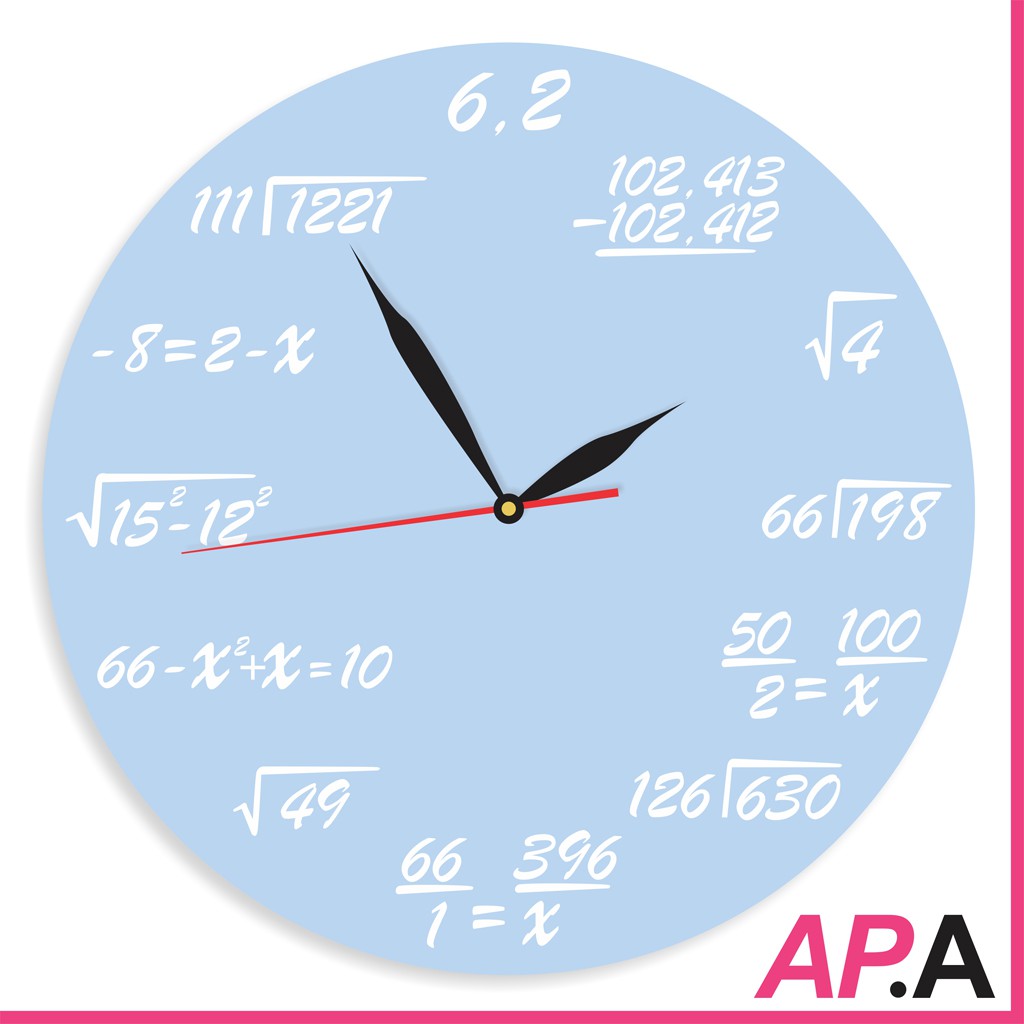 Jam Dinding Kayu Rumus Matematika Warna Wall Decor Kamar Math Biru Minimalis Art