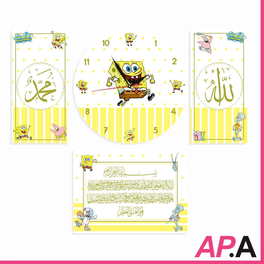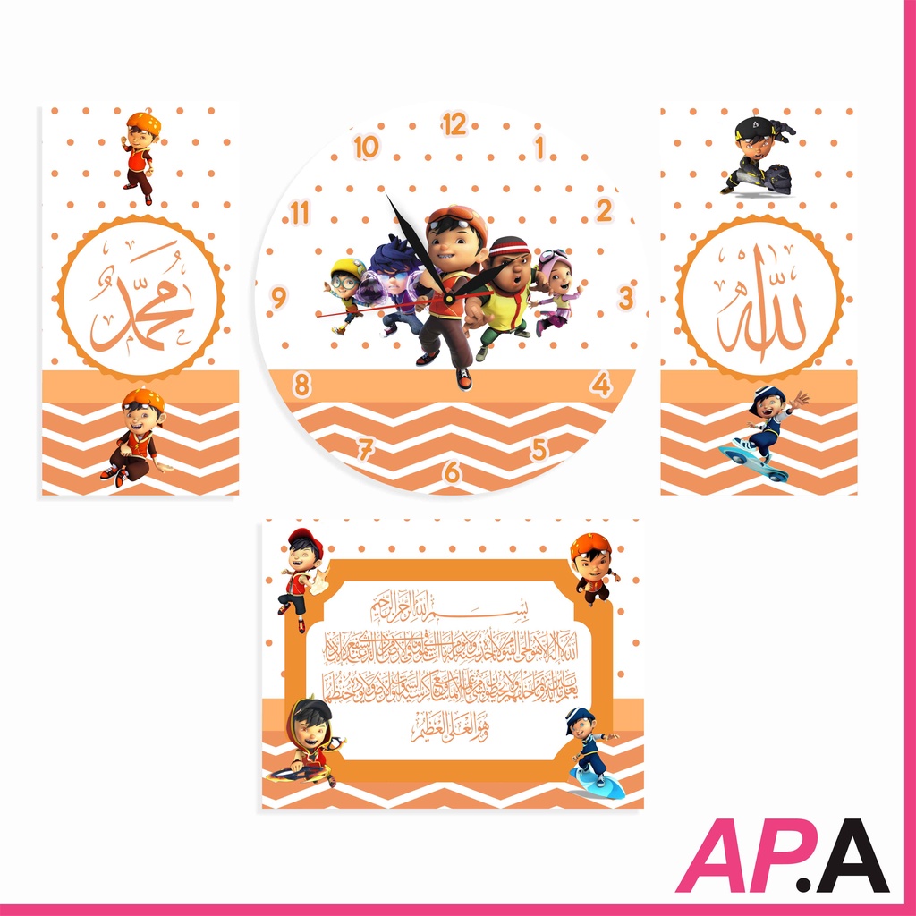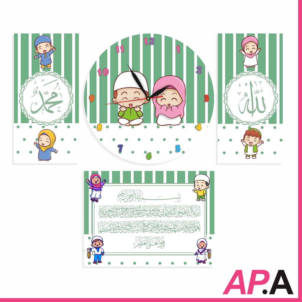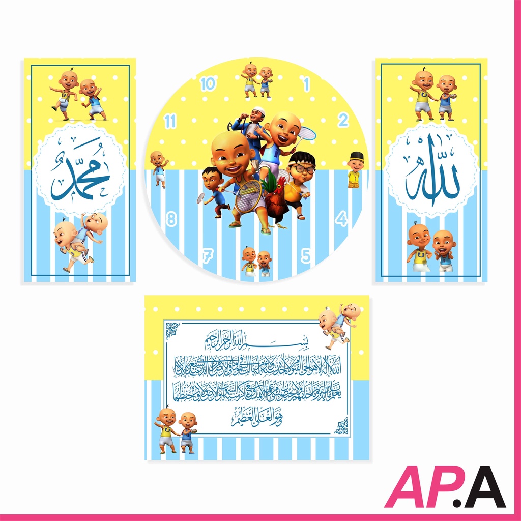 Jam Dinding Kayu Set Kaligrafi Dekorasi Rumah Kartun Upin Ipin Hiasan Kamar Unik