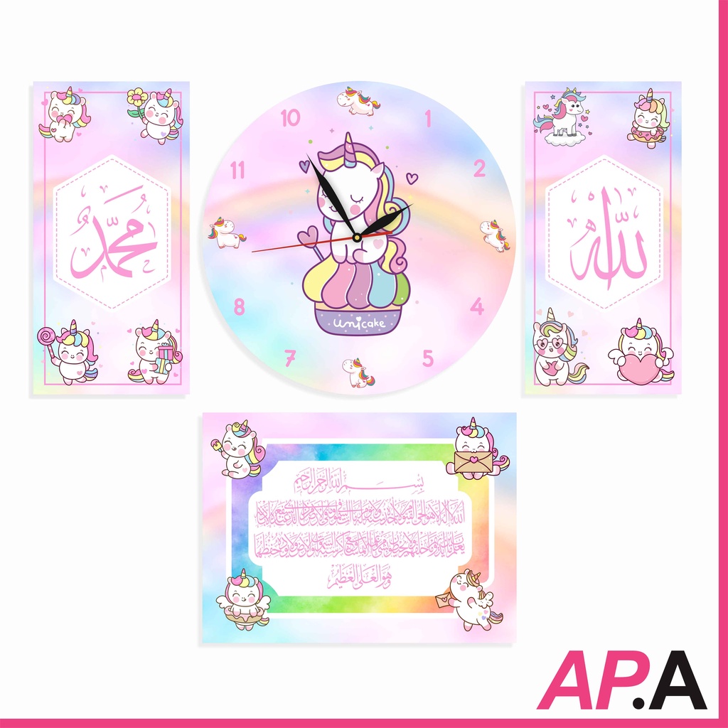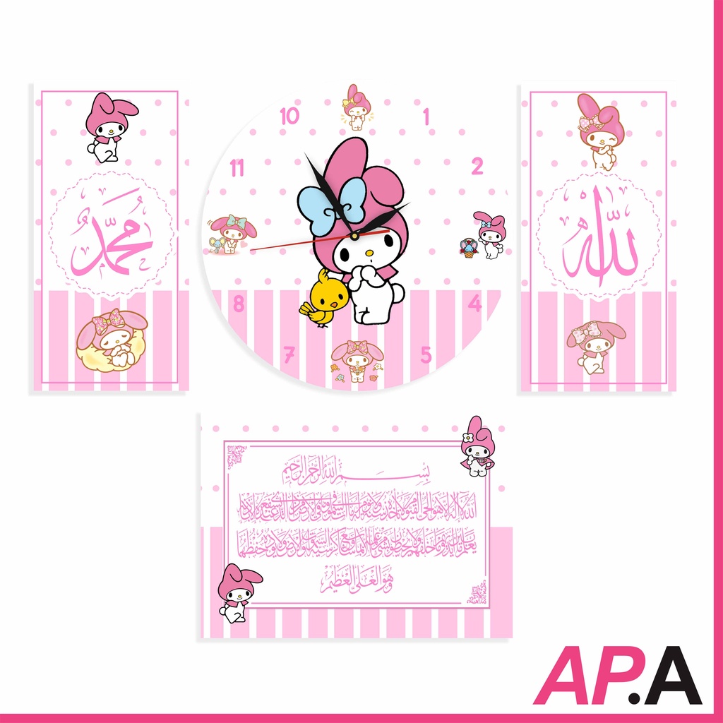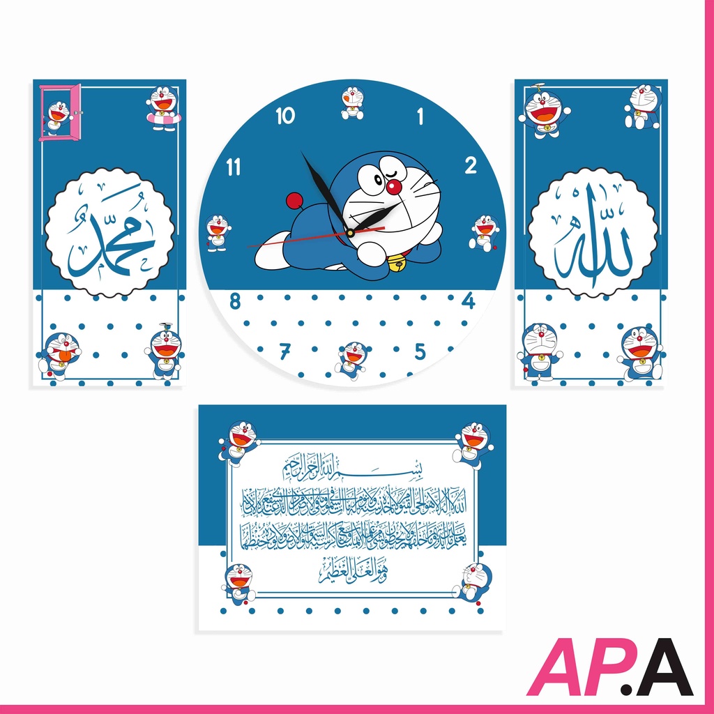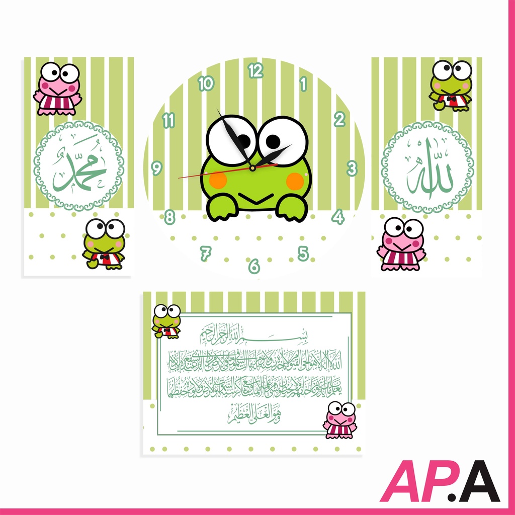 Jam Dinding Kayu Set Kaligrafi Dekorasi Rumah Kartun Upin Ipin Hiasan Kamar Unik